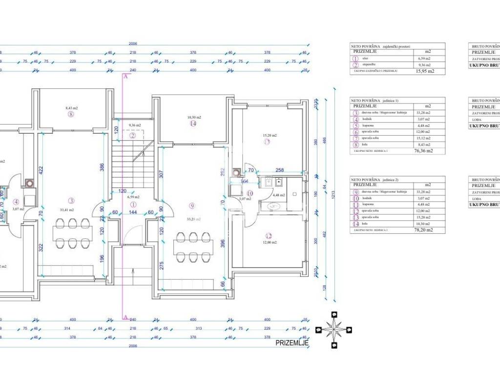 Building land for sale with paid utilities and a project near Umag. The land area is 898 m2. The project includes 6 residential units (two-bedroom apartments).