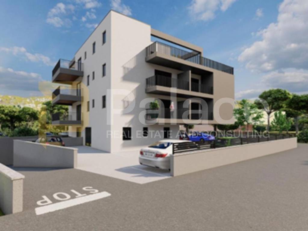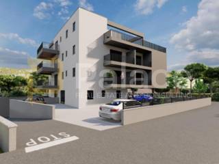 A two-bedroom penthouse with a total area of approximately 120m is for sale, located on the third (top) floor of a smaller residential building under construction in Dugopolje. It is situated in a quiet and well-connected location, with all essential amenities in the immediate vicinity.