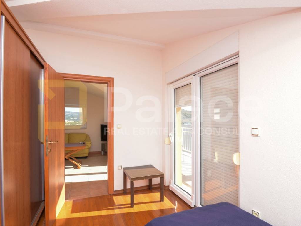 The apartment consists of an entrance hall, a spacious kitchen with a living room area and access to a balcony providing a beautiful sea view, one bedroom also has access to the same balcony, another bedroom, and a bathroom.