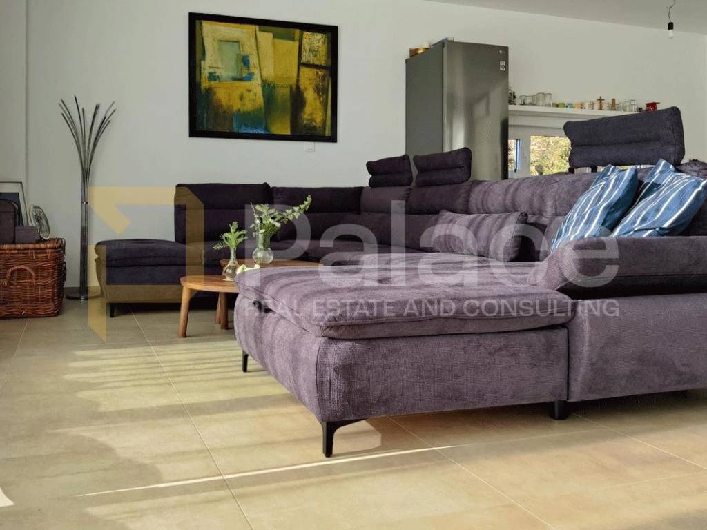 The villa is equipped with a heat pump, prepared for a pool, and kitchen installations, while additional security is provided by an alarm system and surveillance cameras. It is sold furnished, with modern and carefully selected furniture that complements the elegant interior.