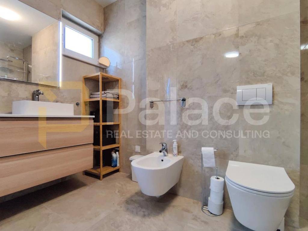 The villa spreads over multiple floors and offers a perfect blend of contemporary design and a Mediterranean atmosphere. On the ground floor, there is a spacious open concept area that combines the kitchen, dining room, and living room with access to the terrace an ideal space for socializing and enjoying everyday life. Also on the same floor are a guest toilet and a utility room.