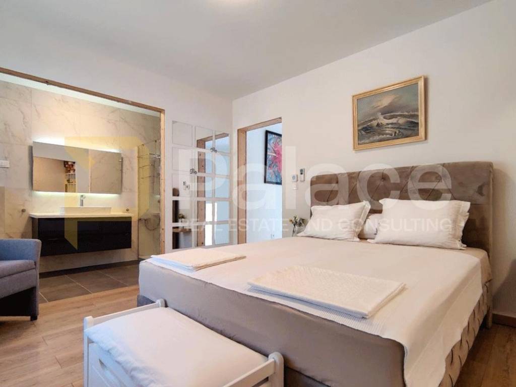 In the quiet part of Banjola, only 250 meters from the sea, a modern villa nearing completion is being sold, designed with special attention to comfort, aesthetics, and functionality.