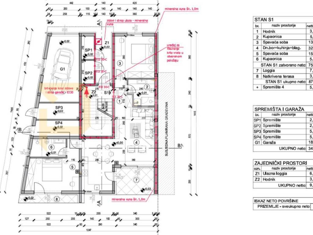 The apartment comes with a storage room in the building and two parking spaces, and the buyer has the option to purchase a garage measuring 22 m for 35,000 euros, in exchange for one parking space.
