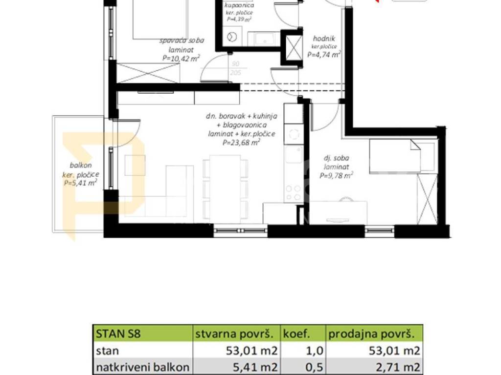 In the quiet part of Novi Marof, near the center, a three-bedroom apartment with an area of 60.76 m2 is for sale, located on the first floor of a quality new building.