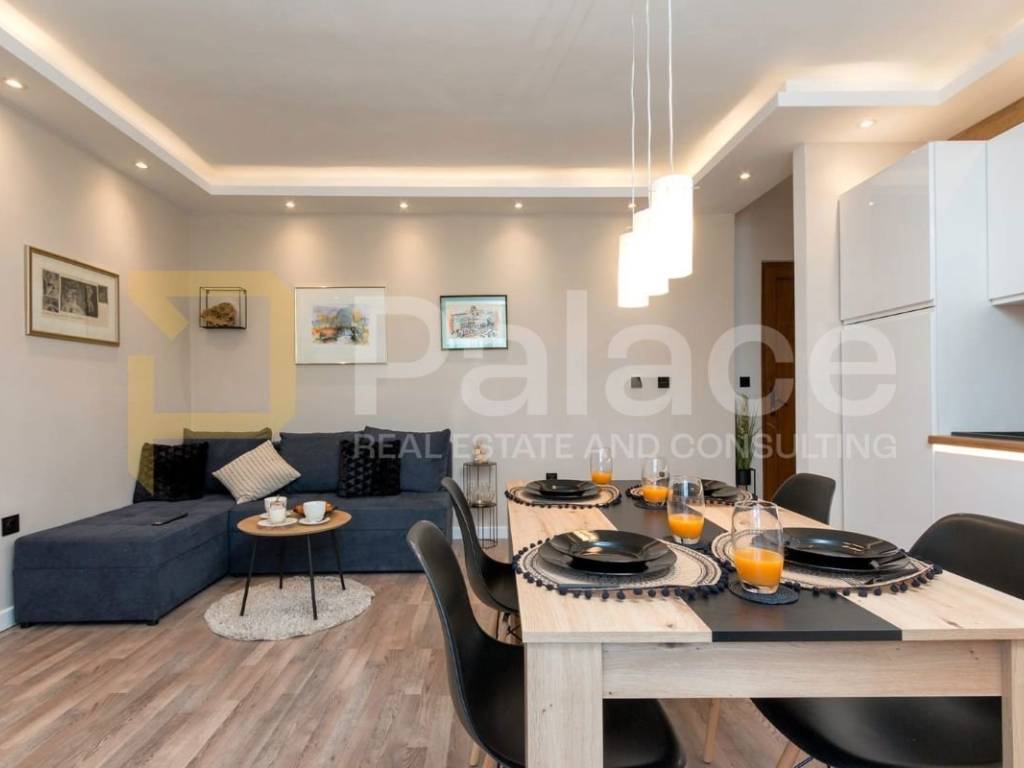 The apartment consists of a spacious bedroom with access to a balcony, ideal for morning coffee or relaxing in the fresh air, a modernly designed bathroom, and a comfortable open concept living space that combines the kitchen, dining area, and living room. The entire apartment radiates light and functionality, with underfloor heating in the living area and bathroom, while the air conditioning ensures optimal temperature throughout the year.