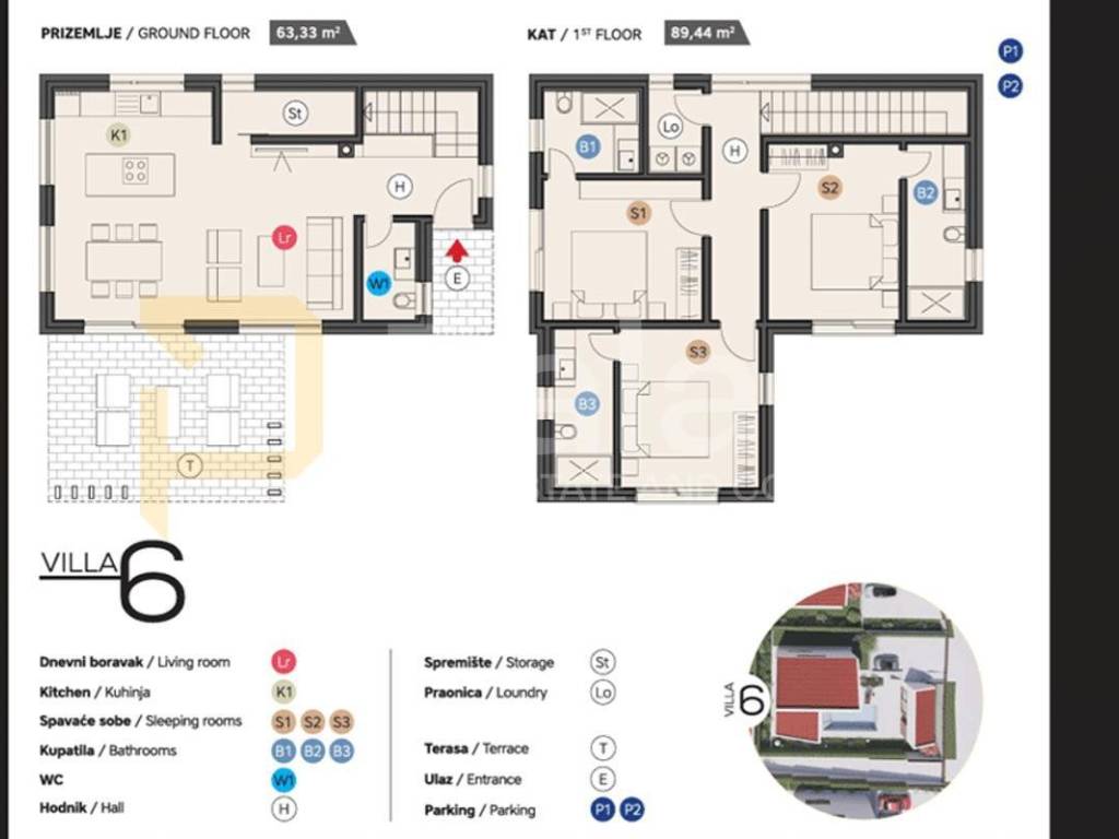 The villa is spread over two floors, with a spacious living room connected to the dining area and fully equipped kitchen on the ground floor, along with a guest toilet. Upstairs, there are three spacious bedrooms, each with its own bathroom.