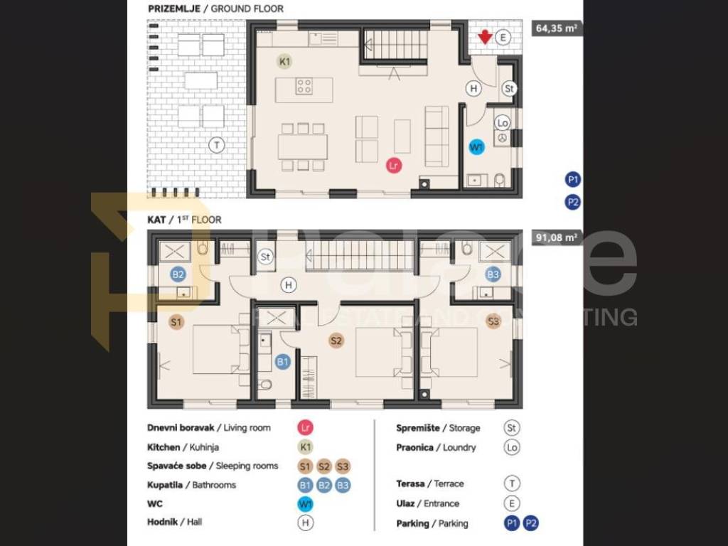 This villa spreads over two floors and offers a high level of comfort, privacy, and a designer-decorated interior. It has a total of 3 spacious bedrooms, 3 modernly designed bathrooms, and an additional guest toilet inside the house.
