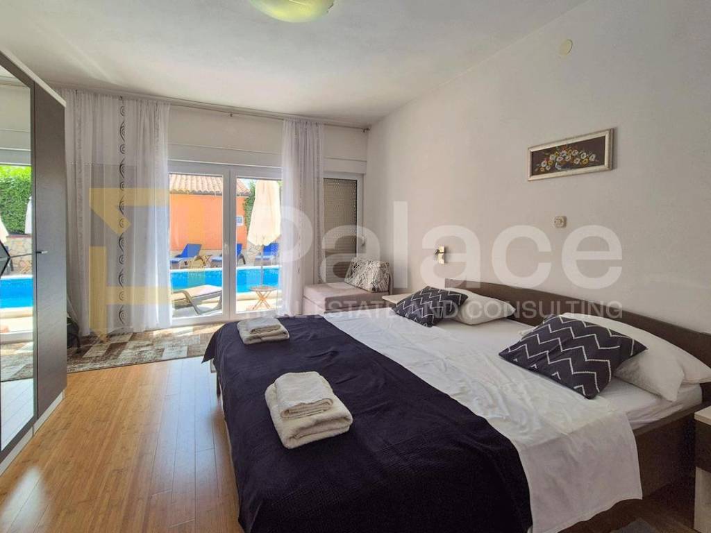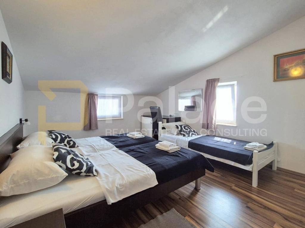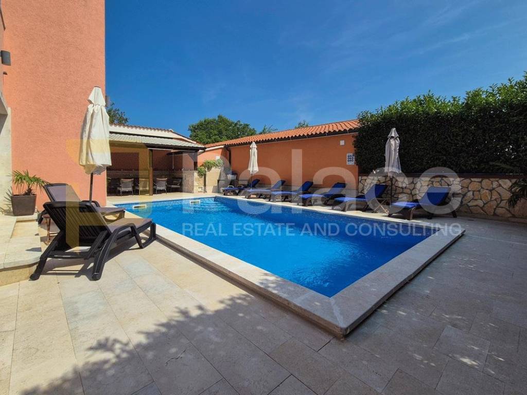 We offer an exceptional villa located in a peaceful environment near Medulin - a perfect home for large families or an investment in high-category tourist rental. This modernly equipped property spans three floors and a total of 310m, offering an optimal layout with 6 bedrooms and 6 bathrooms, an additional guest toilet, as well as top-notch amenities for year-round enjoyment.