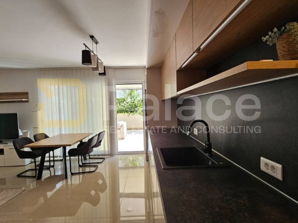 Located in a prime location in the Stoja settlement, just 50 meters from the sea, a modern apartment with a total area of 66.9 m and a large covered terrace of an additional 35 m is for sale. Situated in a newer building with an elevator, garage, and video surveillance, this apartment offers a high level of comfort, privacy, and functionality.