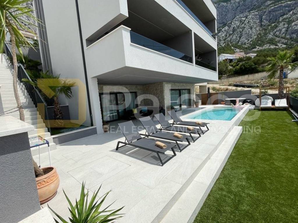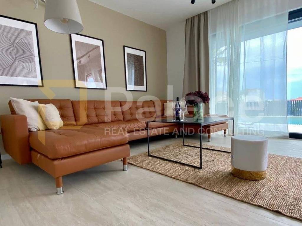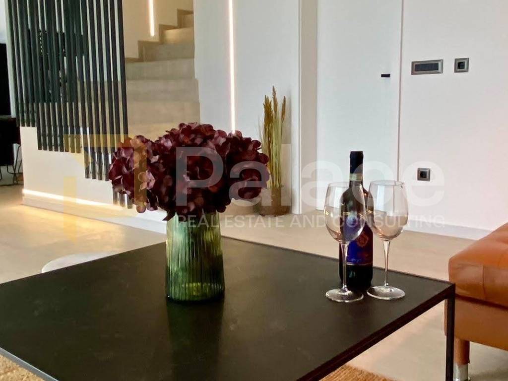 - Ground floor + half of the first floor - a two-story four-bedroom apartment with 3 bathrooms, living room, kitchen, and hallway, all connected by interior stairs. The ground floor apartment has a courtyard with a pool and two balconies on the upper level with a total balcony size of 30m2.