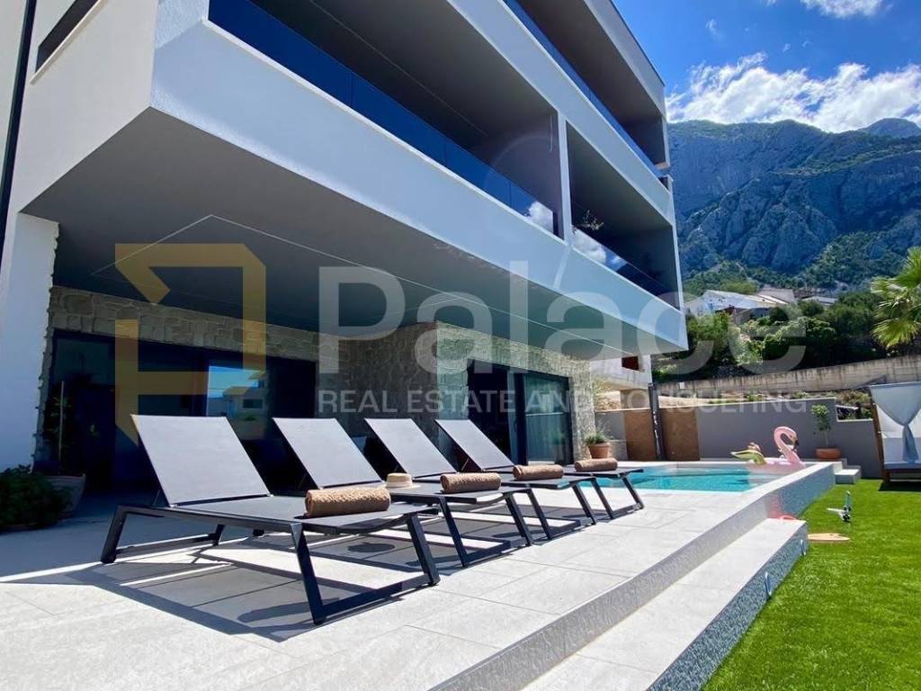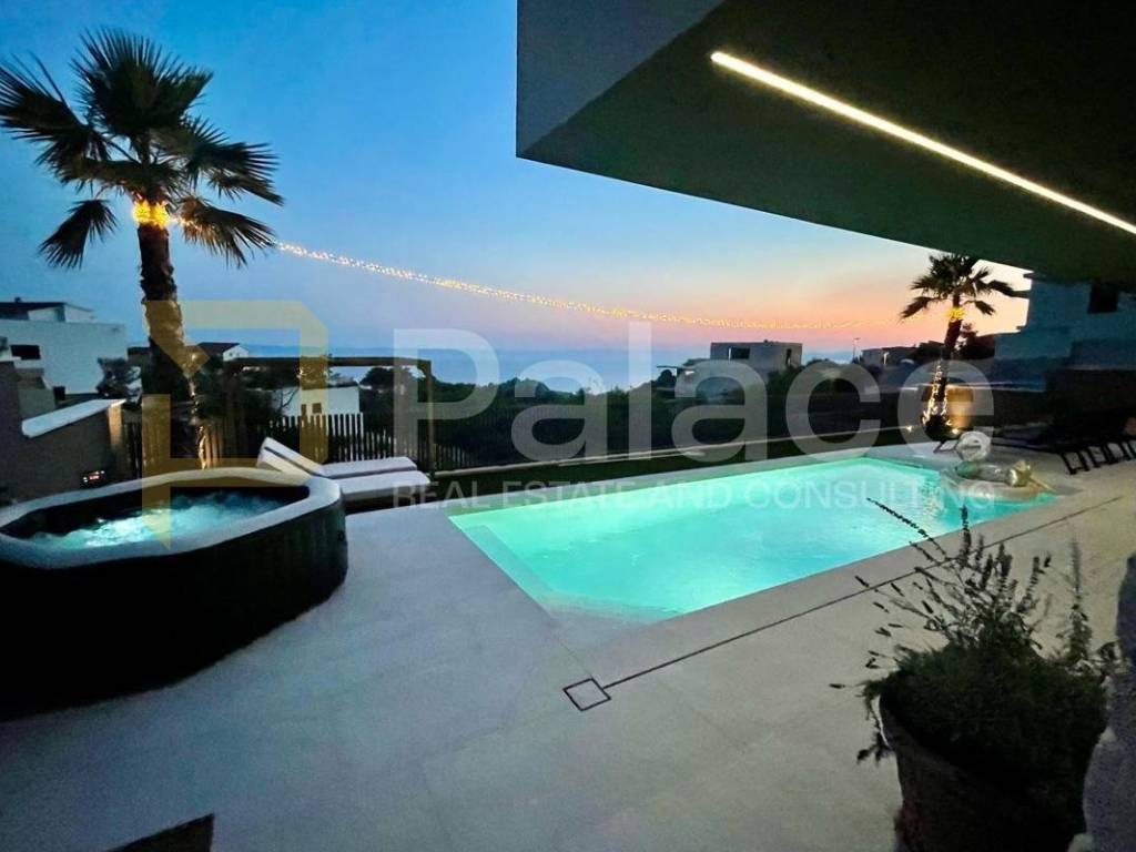 A modernly furnished villa with a pool and panoramic sea views is for sale, ideal for relaxation or luxury tourist rental.