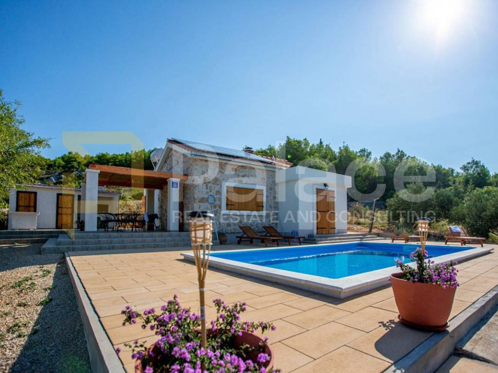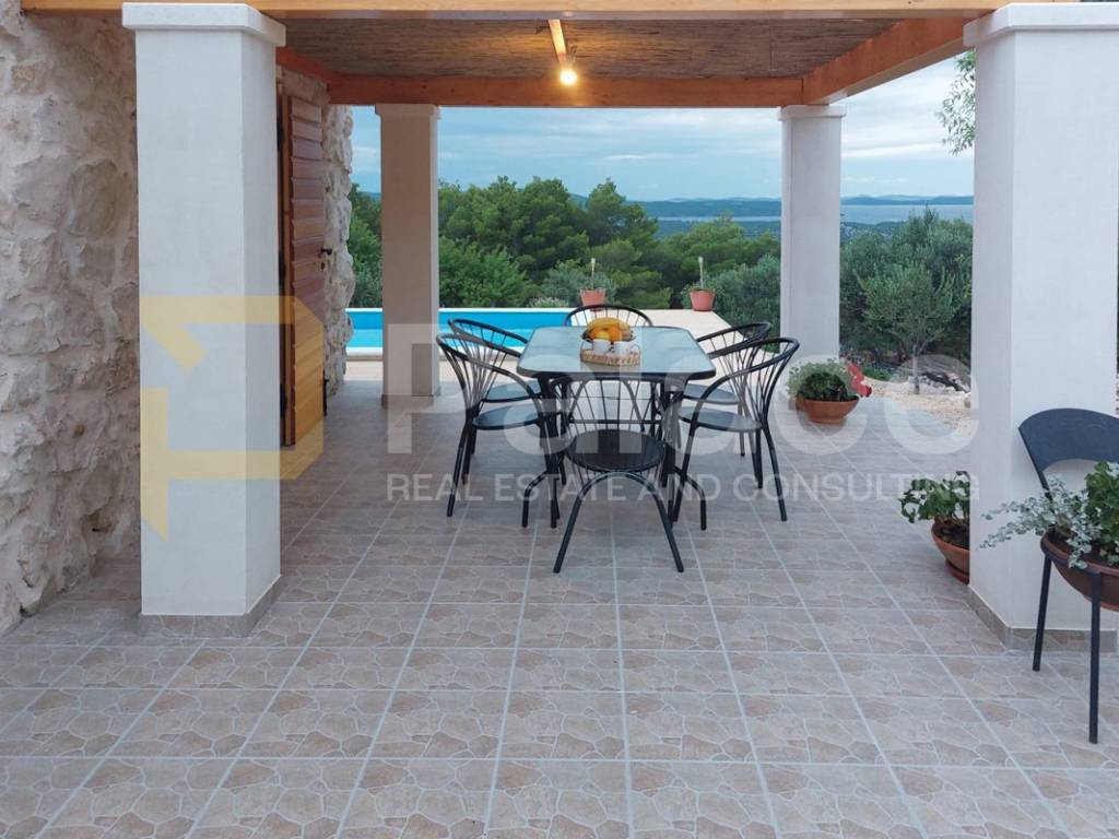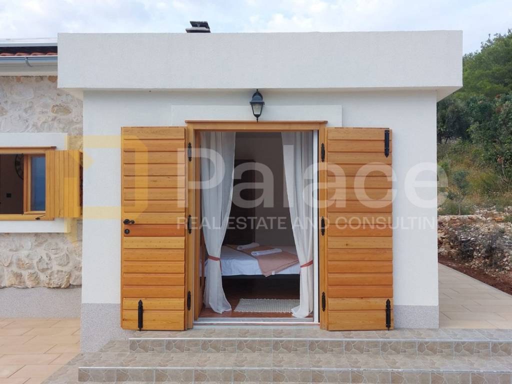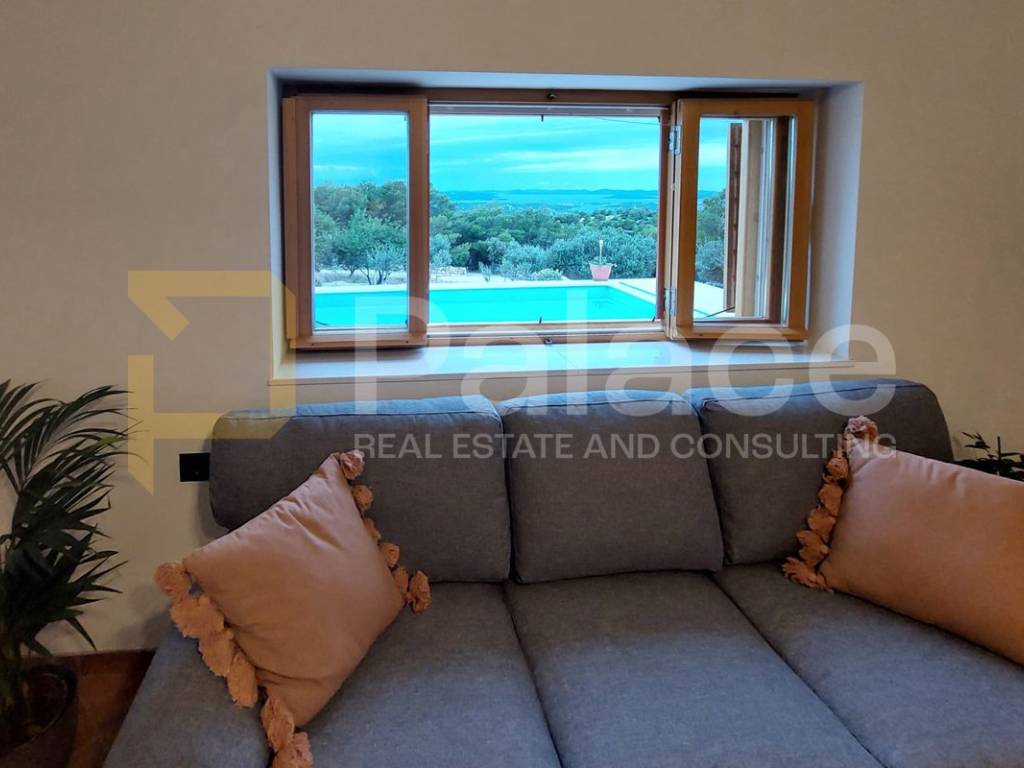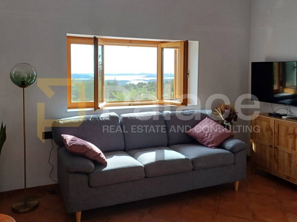 Situated in a special location, surrounded by pine trees and an olive grove with 30 olive trees, this house offers you the city of Šibenik at your fingertips, with a breathtaking view. The house has two bedrooms, a dining room and kitchen, a spacious living room, and a bathroom. There is access to the terrace from all sides, where you can enjoy the fresh air and fantastic view.