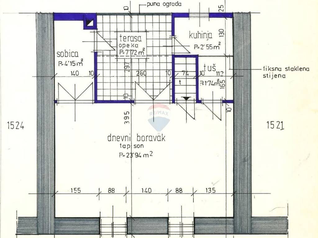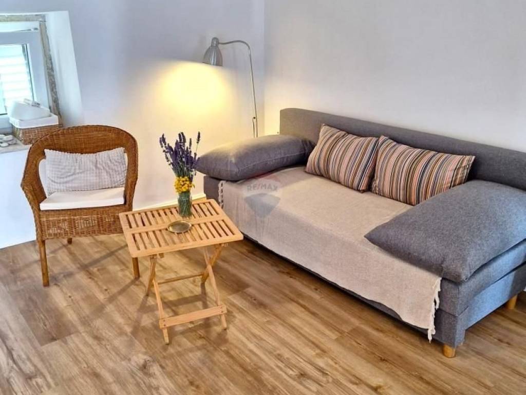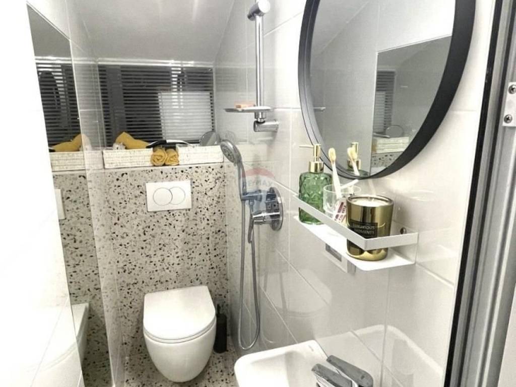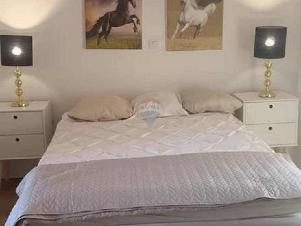 It consists of a large room that is a living room and bedroom in one, one small room that is decorated as a wardrobe, kitchen, compact bathroom and terrace with a sea view.
