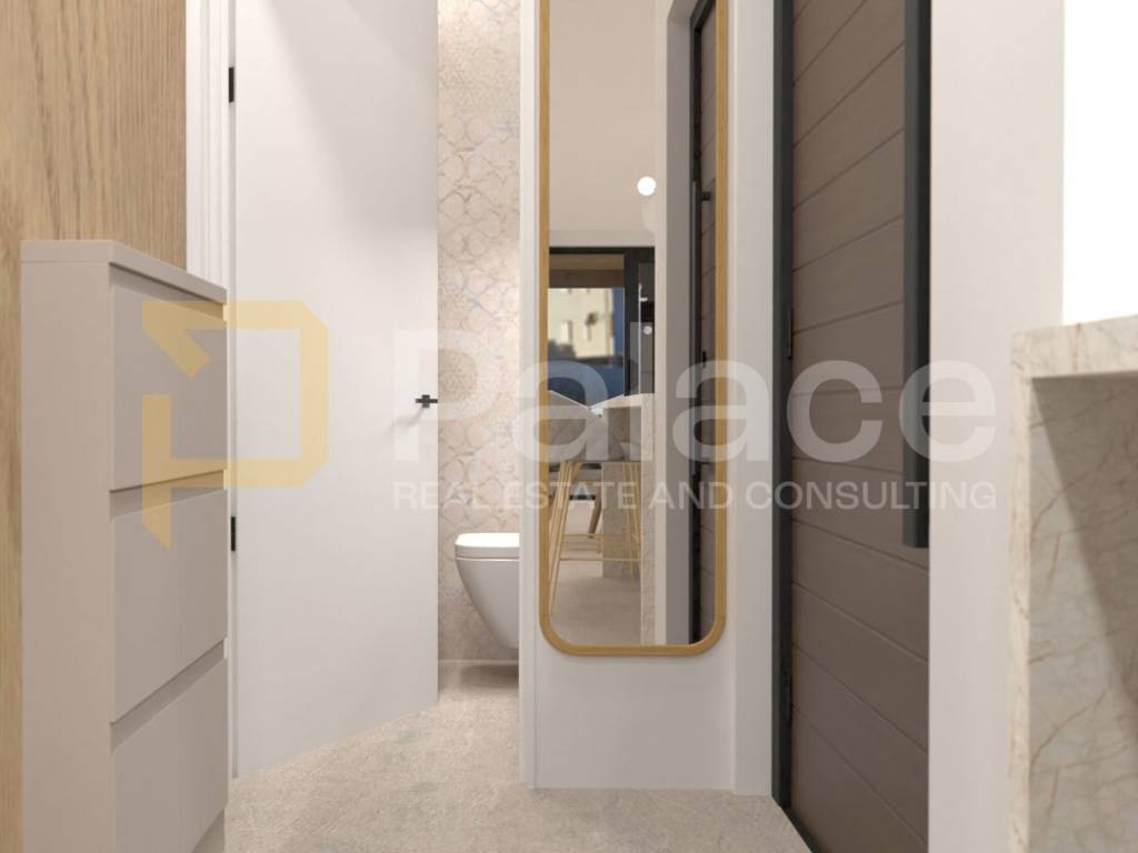 The building is constructed according to the highest energy efficiency standards (A+), with 10 cm thermal insulation, top-quality PVC joinery with triple Low-E glazing, electric aluminum shutters and insect screens. The apartment is equipped with anti-burglary and fireproof entrance doors, while each space has inverter multi-split air conditioning units (Gree) with Wi-Fi control.
