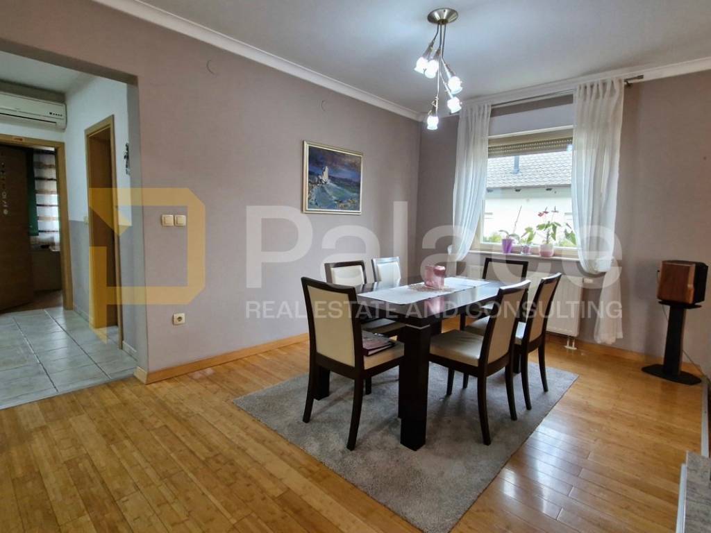 A spacious house is for sale in Vinkovci, consisting of a residential-commercial building with the possibility of converting office space into residential, according to the buyer's needs. The property is located in a quiet street surrounded by greenery.
