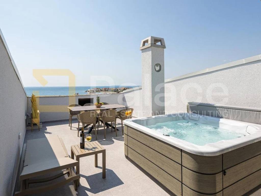 For sale is a beautifully furnished duplex apartment 10m from the sea in a residential building with fifteen housing units.