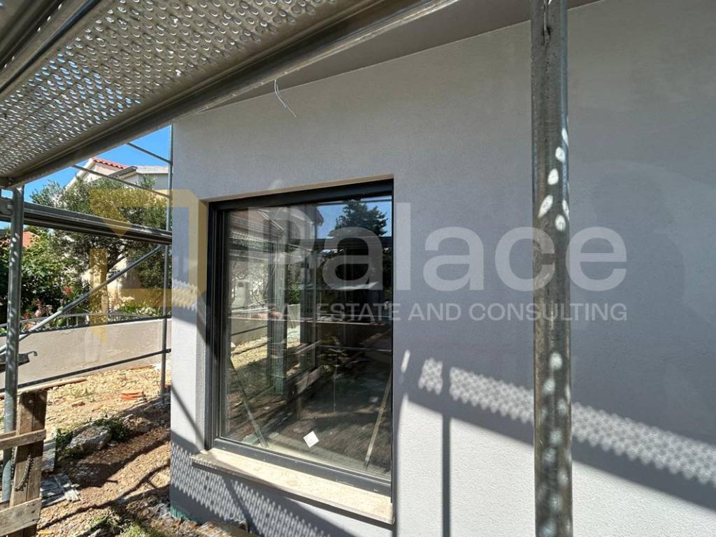 This modern house is constructed with high-quality materials and equipped according to the latest construction standards - PVC joinery, air conditioning in all bedrooms and living room, underfloor heating in bathrooms and living room, along with the use of laminate flooring in bedrooms and modern bathroom fixtures. High-quality Italian ceramics were used, and the modern glass railings on the balconies are worth mentioning.