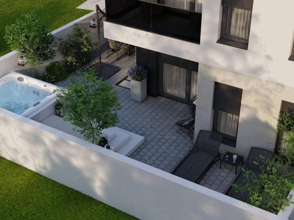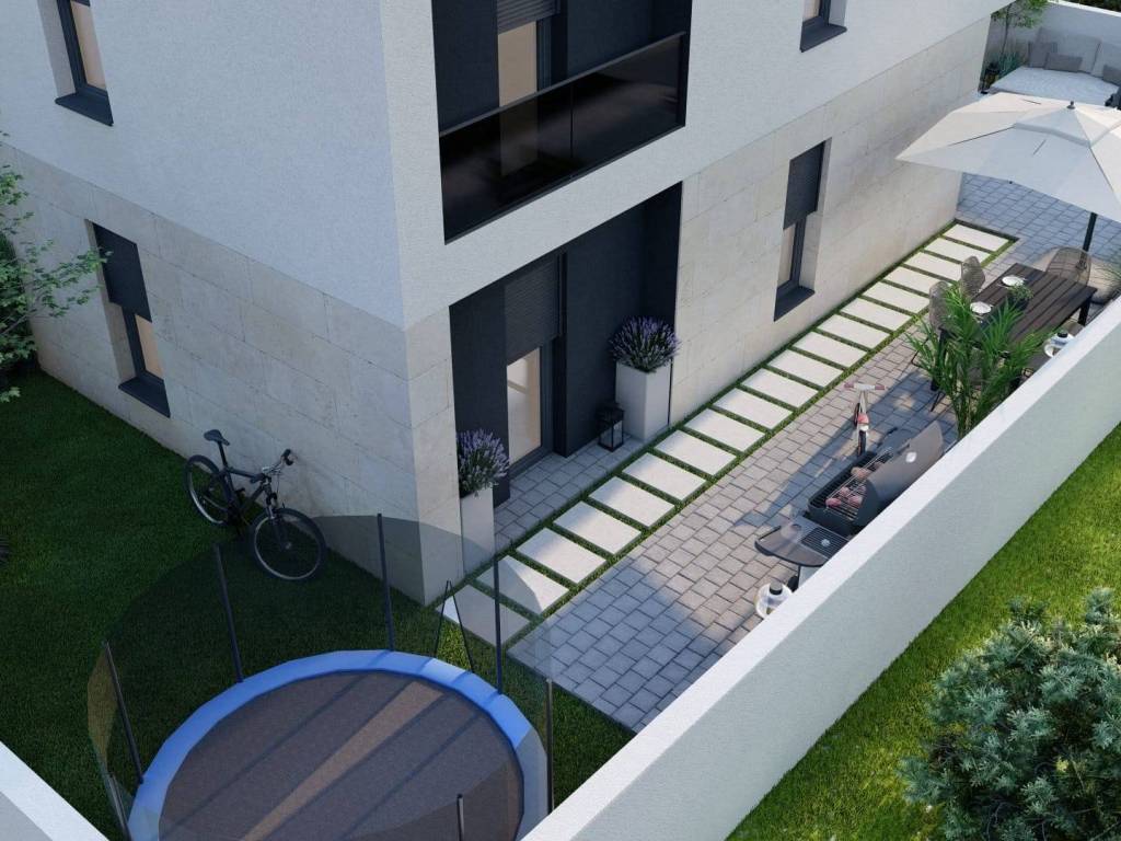 We present a rarity on the market, an apartment in a new building located in a quiet suburb just 4 km away from the center of Pula. This beautiful modern 65 m2 apartment boasts a large outdoor terrace and garden. Situated on the ground floor of a newly built residential building consisting of only six units, this apartment is being sold fully furnished and equipped according to visualizations!