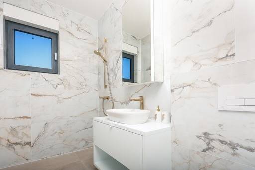 These impressive villas, each 144m2 in size, offer an incredible combination of elegance, comfort, and top-notch equipment, providing a flawless experience of modern living. Each villa consists of three spacious bedrooms, each with its own bathroom, ensuring privacy and comfort for all family members or guests. The elegant living room and fully equipped kitchen are perfect for socializing and entertainment. Everything is furnished with high-quality furniture and equipment, including impressive Moooi chandeliers, Bosch appliances, and elegant Casa Mania chairs, ensuring the highest level of comfort and functionality.
