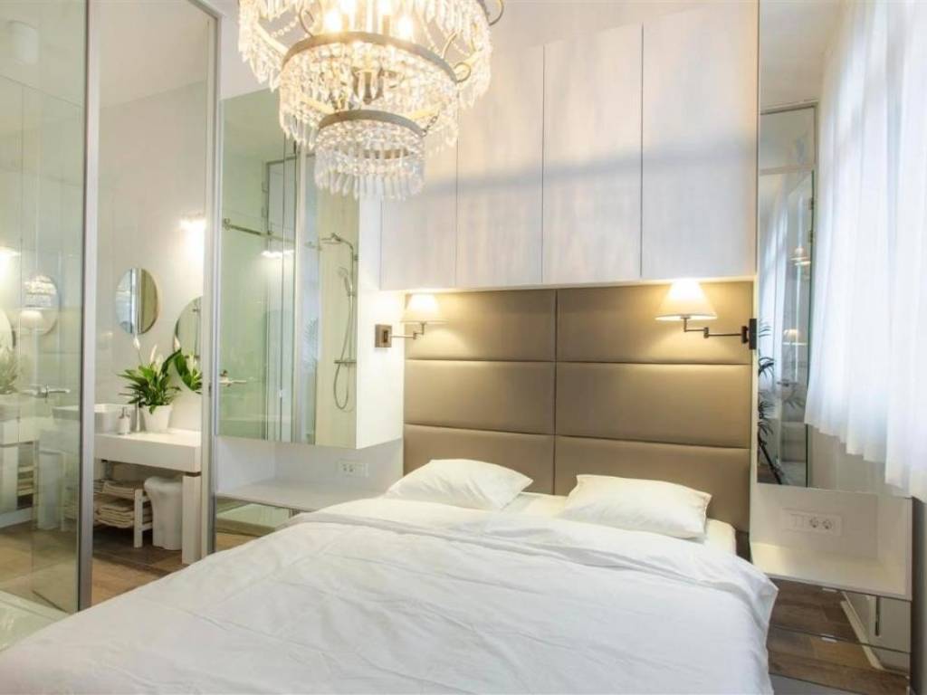 The interior is designed with an emphasis on spaciousness, using glass and mirrors to create the impression of a larger space. The apartments are equipped with luxury furniture (including CASAMANIA and HORN chairs) and modern air conditioning.