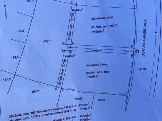 Entrance to the plot immediately from the highway. The plot is overgrown with vegetation and pine trees.