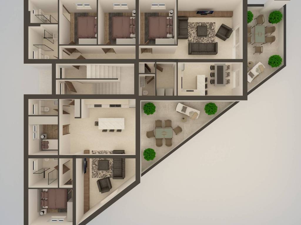 Only the best materials are used in the construction, and the building will be equipped with 10 cm thermal insulation, water-repellent finishing plaster in color, PVC carpentry, mosquito nets, video surveillance, LED technology, Internet and TV connections, TEM Modul switches, porcelain ceramic tiles and air conditioners.