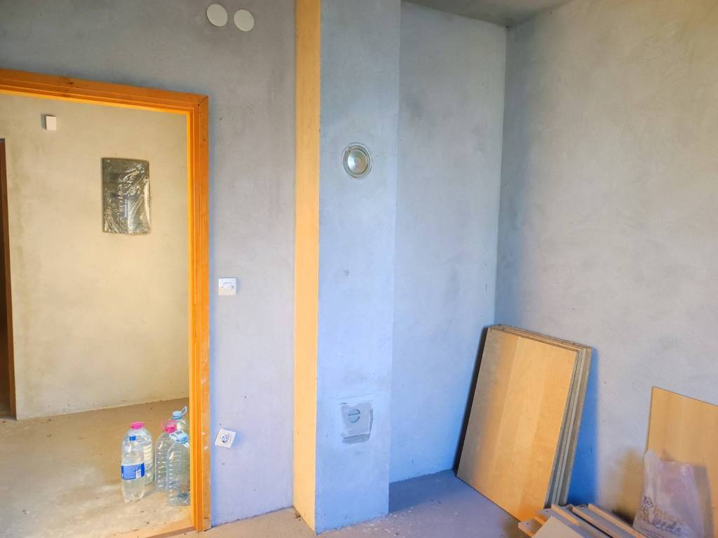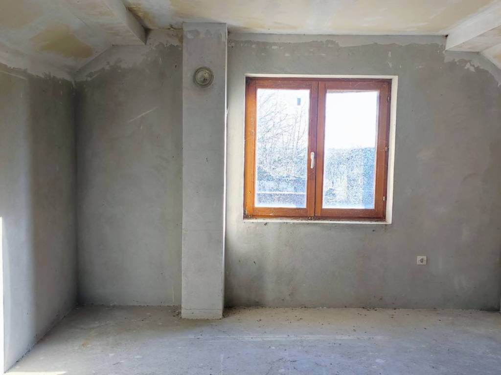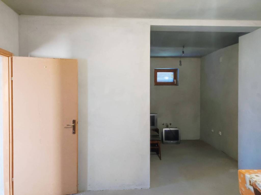 Built in 2000, with electricity and water connected, the interior of the house is plastered and gypsum boards are installed in the attic. The ground floor consists of two rooms, a bathroom, and a living space with a kitchen, while the attic holds two additional rooms. The house is not yet occupied, but preparation work has been completed; a little paint and imagination and you have your own little oasis.