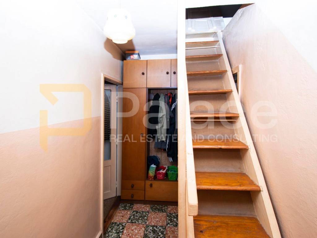 The house is situated on a plot of 264 m2, and on the ground floor, there is a living room, kitchen and dining room in one, a bathroom with a toilet, one bedroom, and a cellar. Internal stairs lead to the upper floor where there are three bedrooms and a spacious terrace with a beautiful view of 31.5 m2. Behind the house, there are two utility rooms with a total area of 15m2.