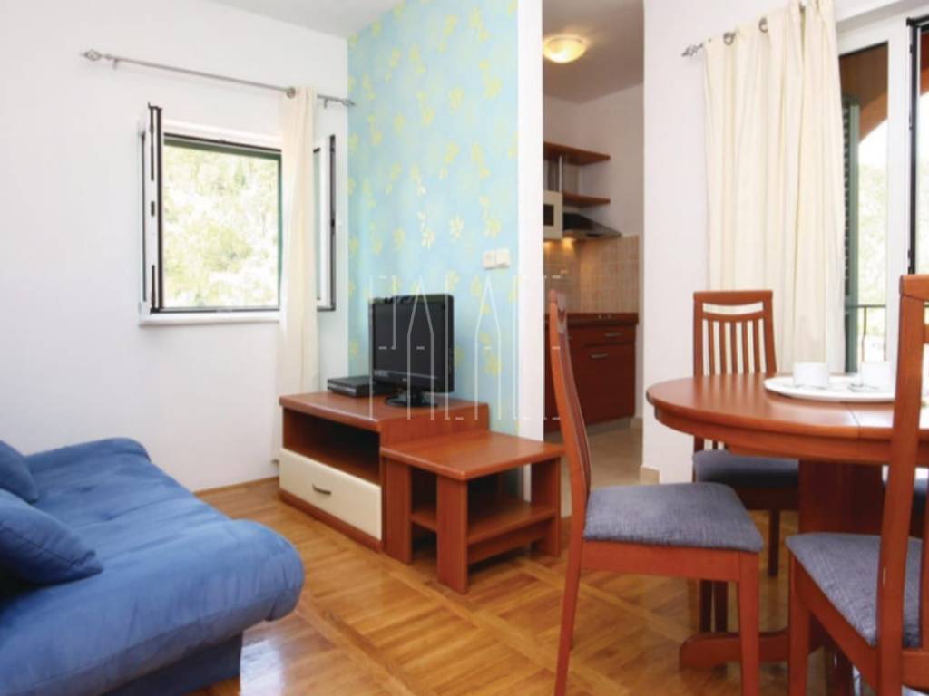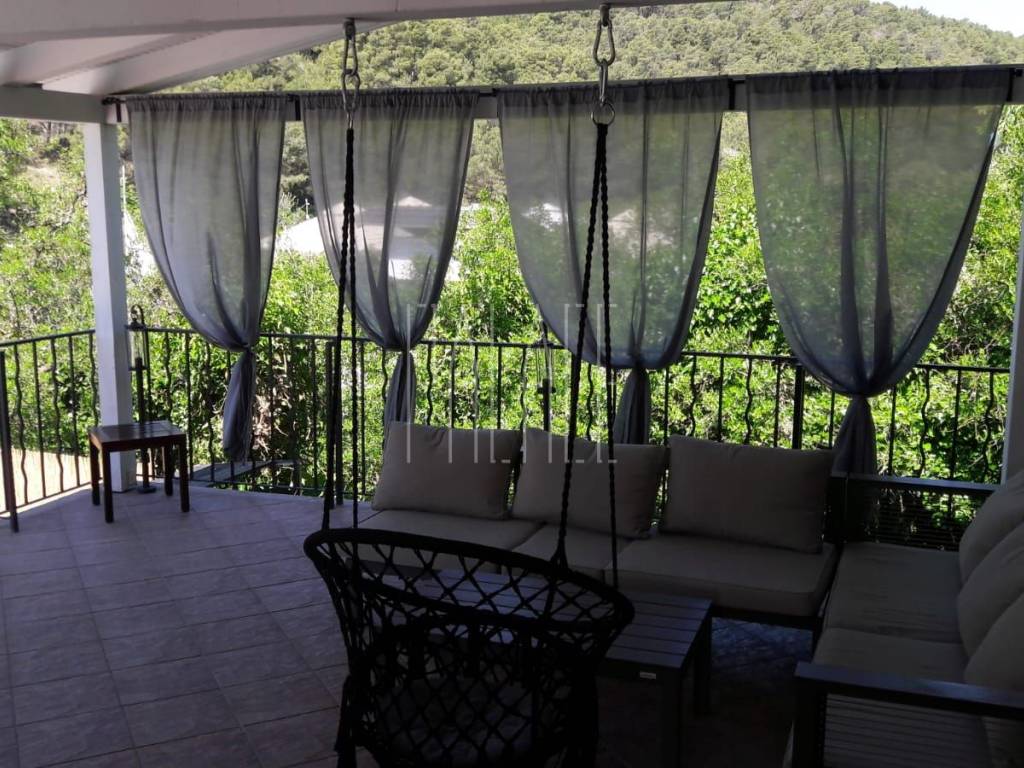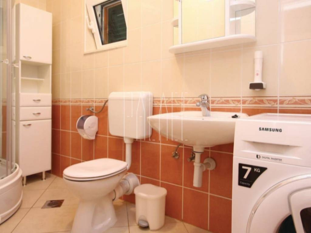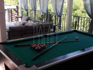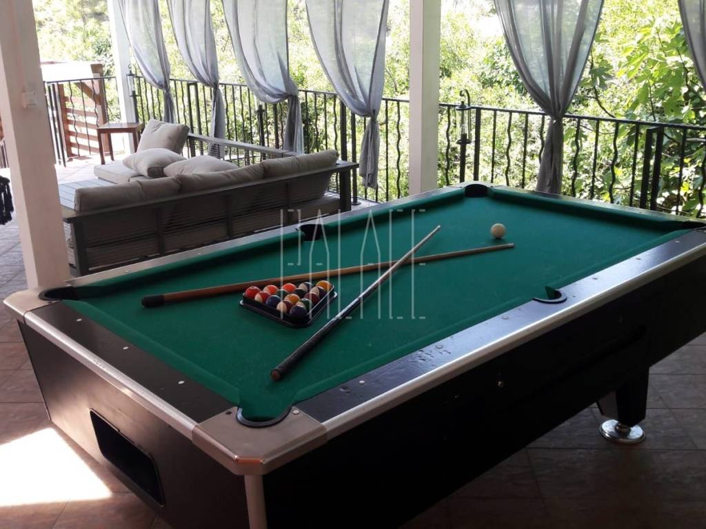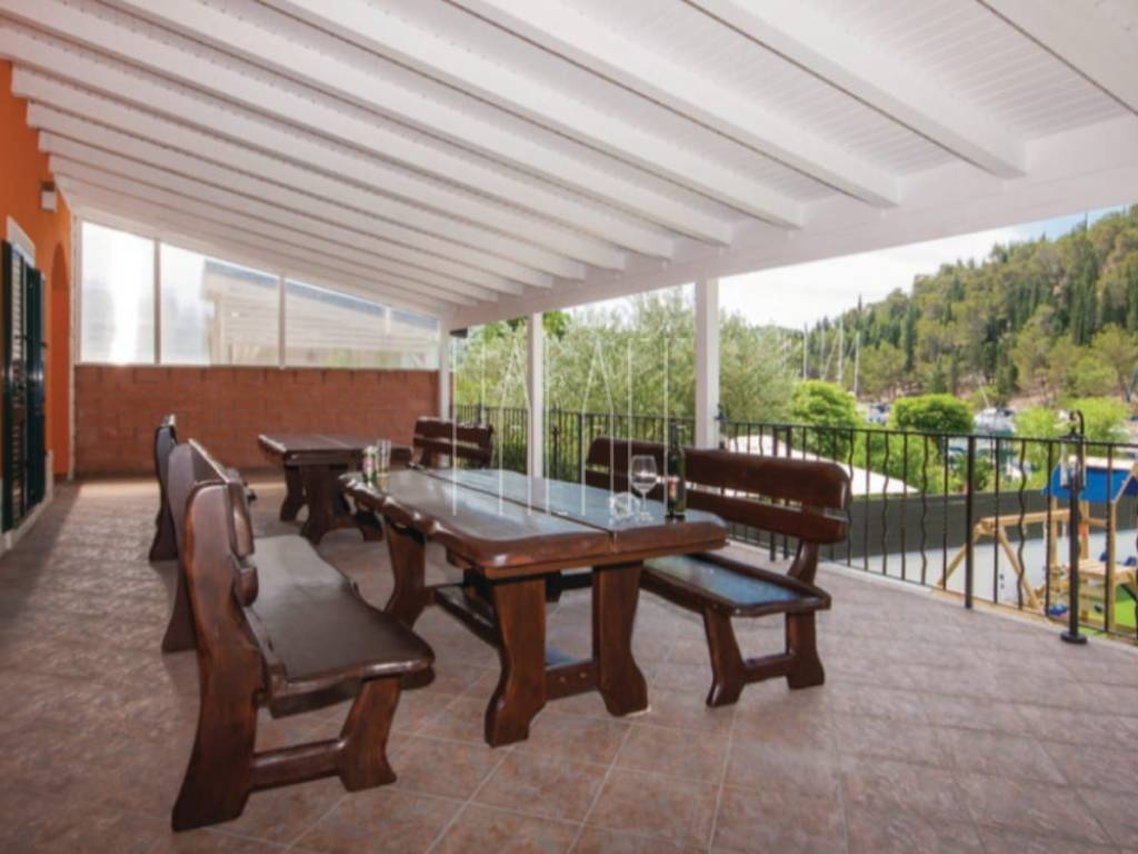 The living area of the house is 240 m2, and the land area is approximately 500 m2. On the ground floor of the house, there is a wellness area, sauna, showers, massage room, and a bar. Additionally, there is a separate building on the ground floor housing a wine cellar and tavern. The first floor consists of two one-bedroom apartments, each with a designated parking space behind the house. Access to the second floor, or high attic, is through external stairs, where a spacious two-bedroom apartment is located, also with a designated parking space. In front of the house, there is a large pool, a covered terrace, a grill, a summer kitchen, and a covered area for gatherings. The house is well-maintained and move-in ready. The garden is landscaped in a Mediterranean style. The location is ideal for peace and nature lovers, and it is within reach of the Krka National Park.