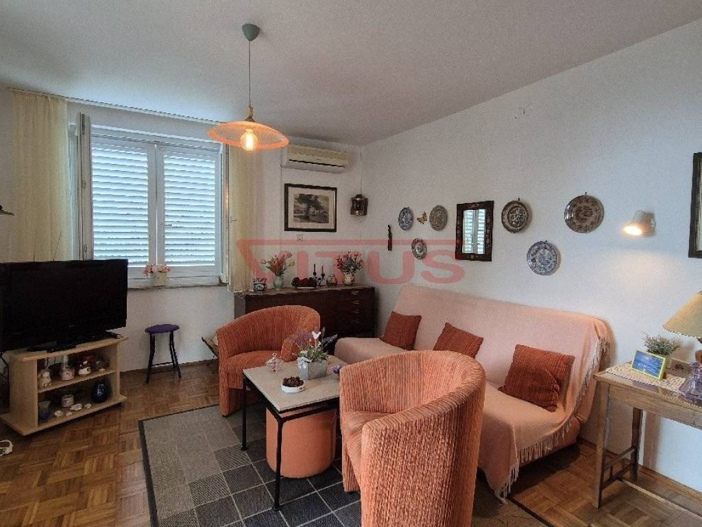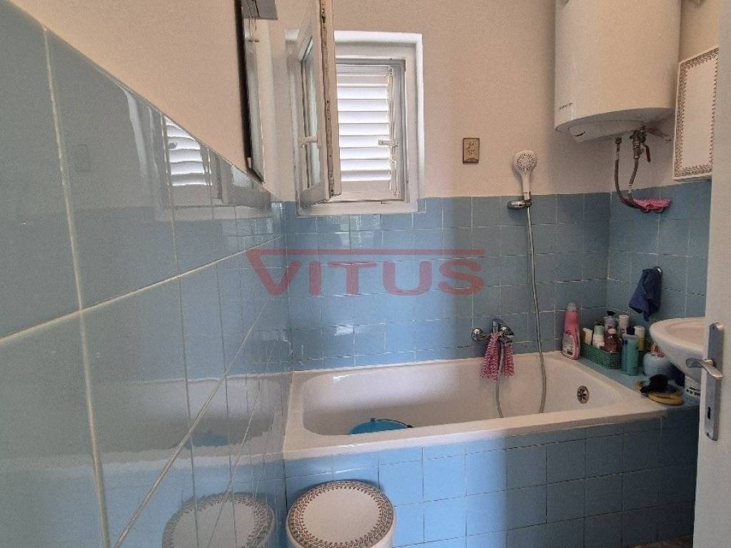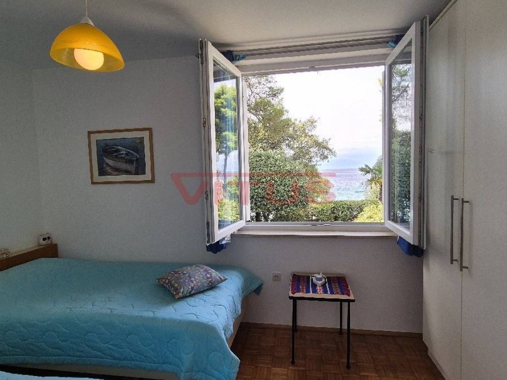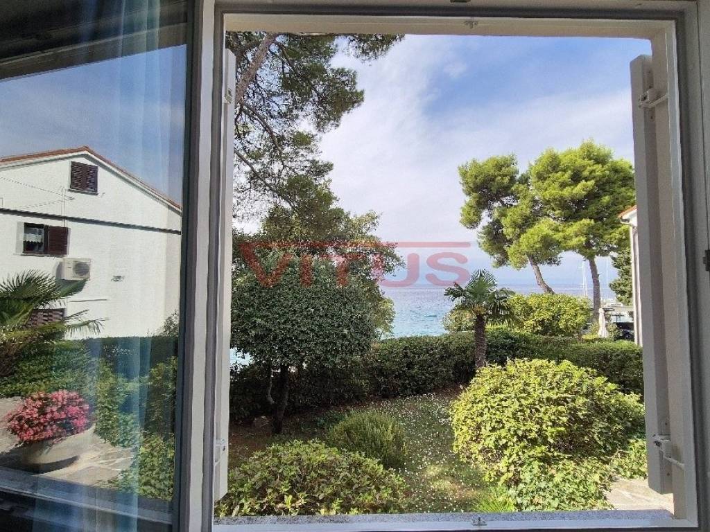Island of Krk, Malinska! Exclusive location, first row to the sea! Detached house of 57 m2 is located on a plot of 671 m2 right by the sea. The house consists of a hallway, living room, kitchen, bedroom, bathroom, two terraces and storage room. Spacious garden of 600 m2 provides privacy, natural shade and direct access to the beach. The house is air-conditioned, has two parking spaces and a beautiful sea view! It is also possible to reconstruct and build a house with a floor size of 150 m2 (basement, ground floor and first floor) with two residential units.