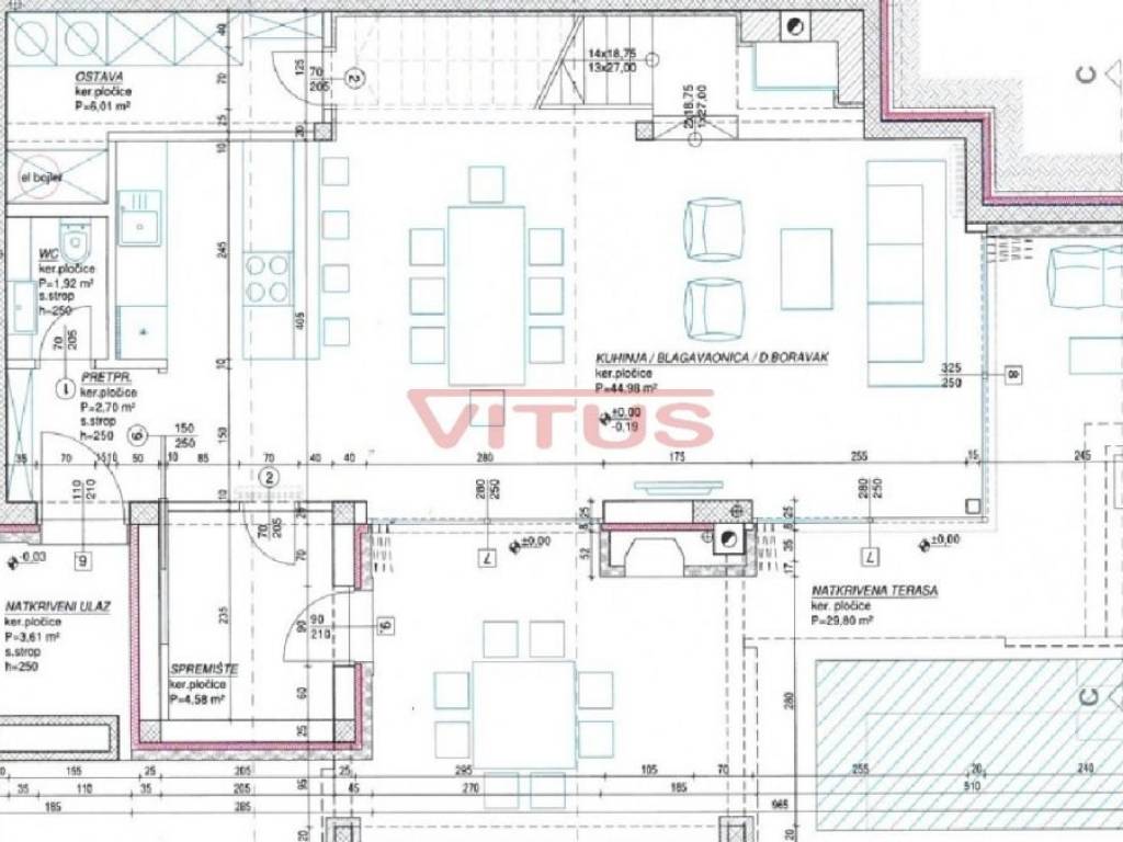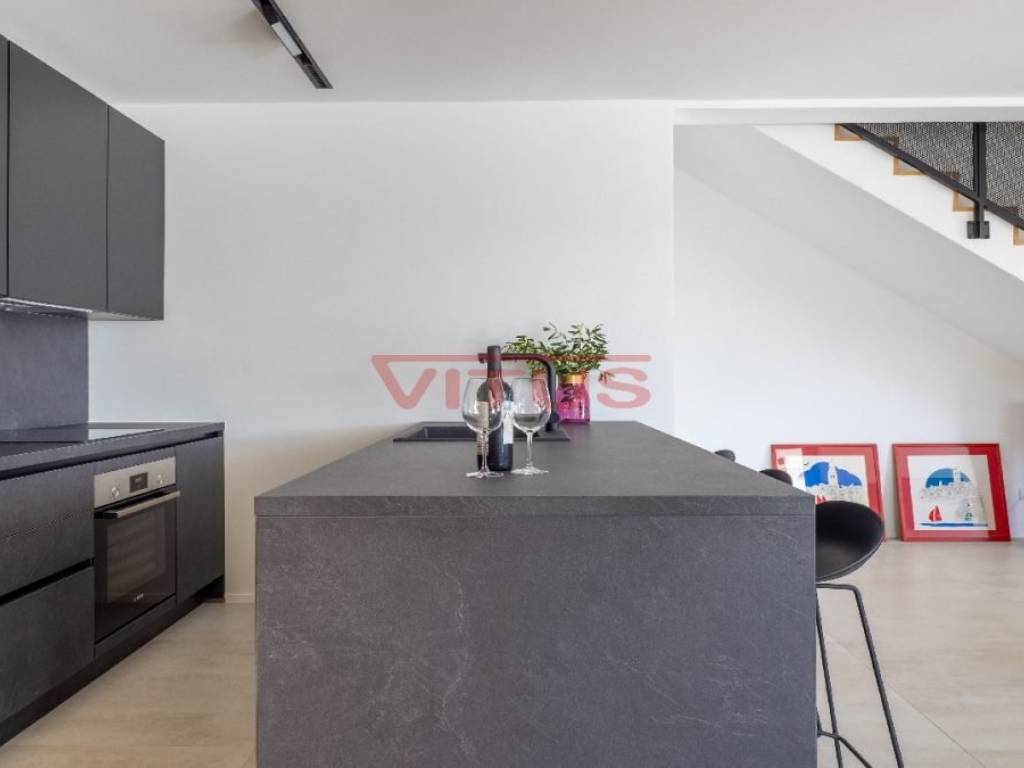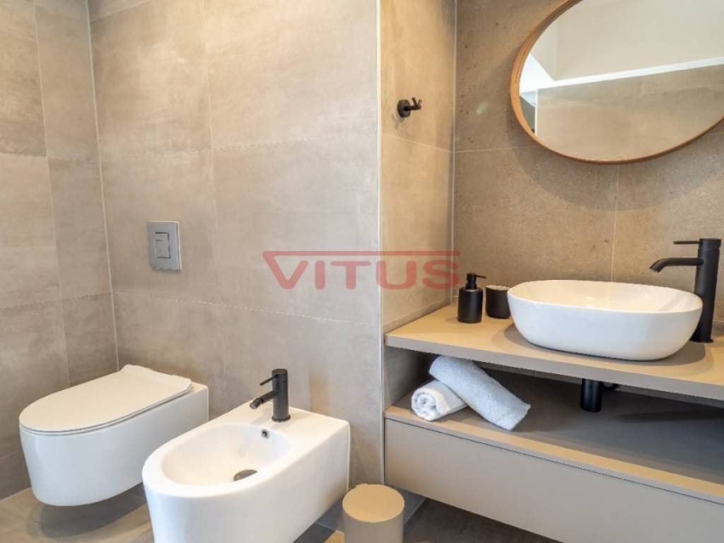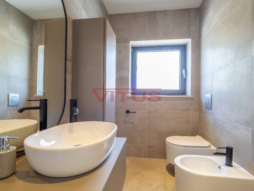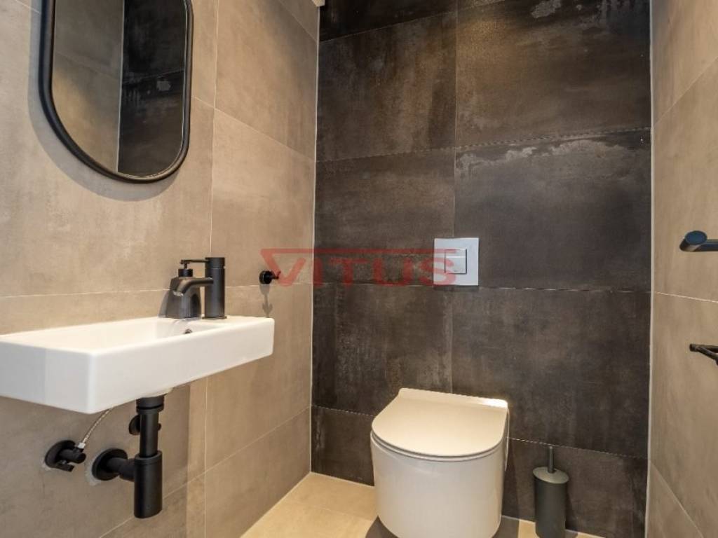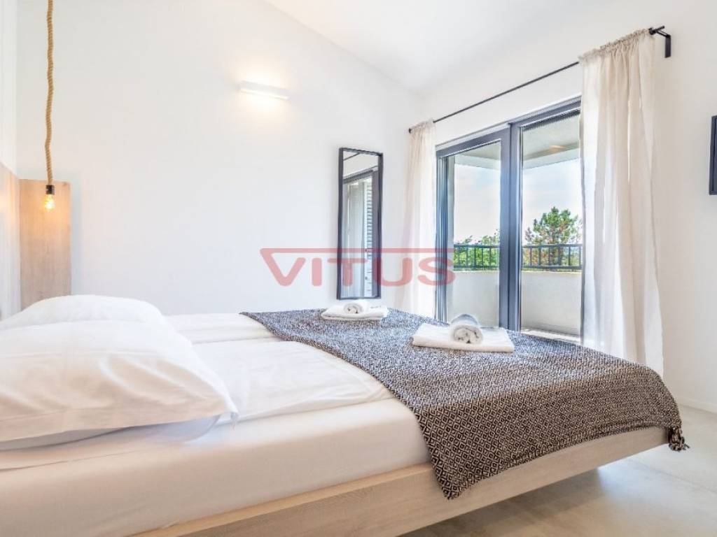 Spacious villa with pool, total living space of 118 m2, located in a quiet part of Vrbnik. It consists of ground and first floor. The ground floor has a living room with kitchen and dining area, toilet, storage room and a covered terrace. The living room has access to a covered terrace and a swimming pool with sun deck. On the first floor there are three bedrooms and three bathrooms, two of which are located in the bedrooms and one in the hallway. Access to the covered terrace have two bedrooms and one has a balcony with a lovely sea view. On the landscaped garden there is parking for two vehicles. High quality construction and equipment, air conditioned, with underfloor heating. In a green oasis, villa is 550 m from the sea.