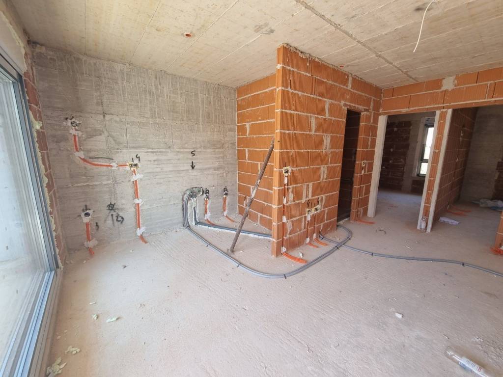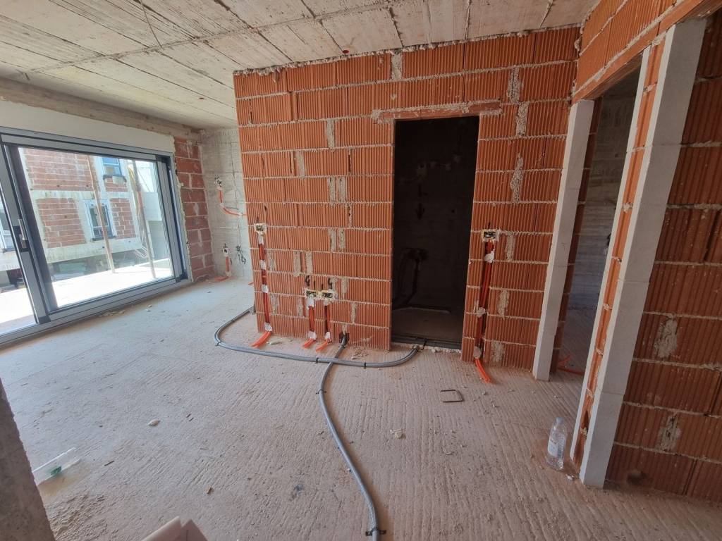 We offer an apartment under construction located in a smaller residential building with a total of four apartments. This apartment has a total of 56.85 m2 and offers an elegant entrance hall, two bedrooms, a kitchen with a dining room, and an airy living room that leads to a terrace with a beautiful view. The apartment also includes a storage room on the ground floor of the building of 7 m2, a garden of 10 m2 and a covered parking of 12.50 m2. With air conditioners in all rooms, this apartment ensures an optimal temperature throughout the year.