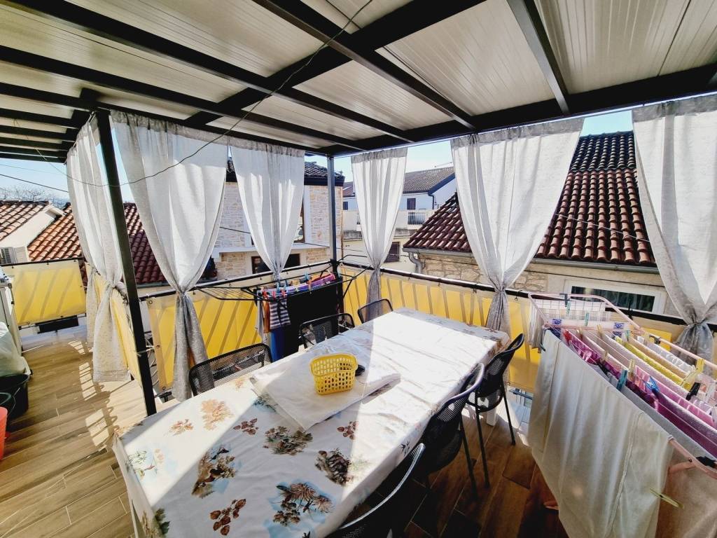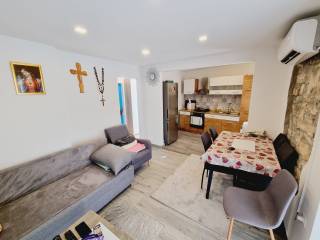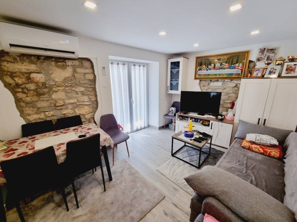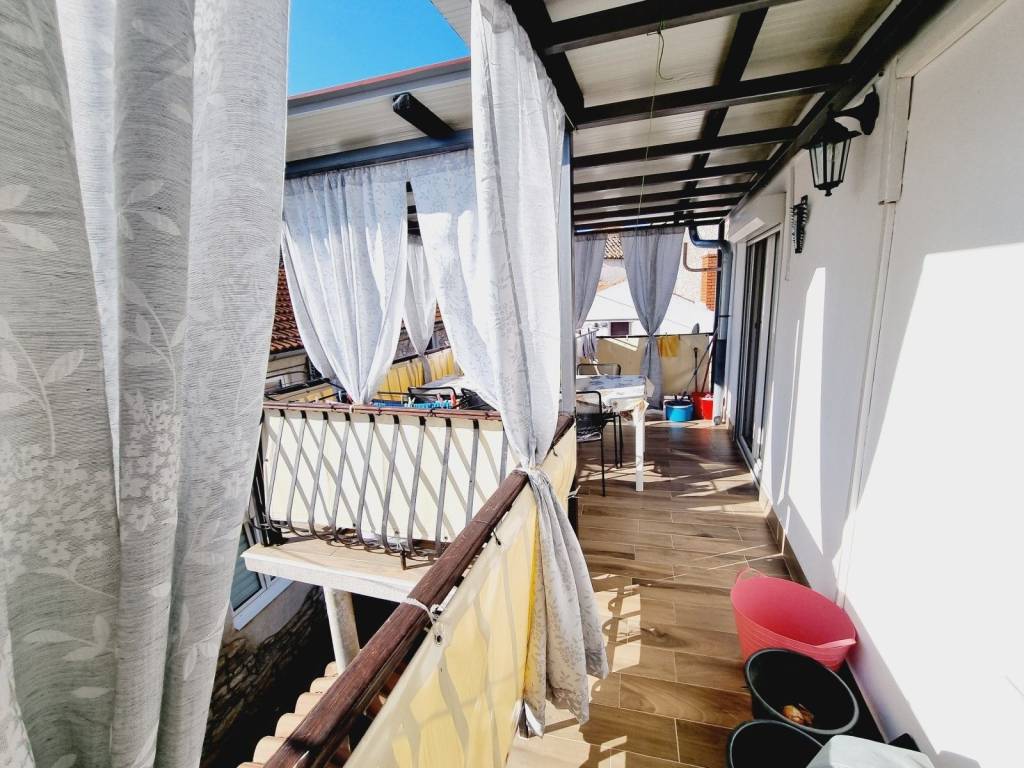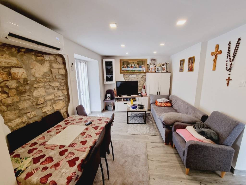 For sale is an apartment located in the heart of Tar. This spacious 77 square meter apartment located on the first floor consists of an entrance hall, bathroom, two bedrooms - one of which has access to a large terrace with sea views - as well as a kitchen and a living room with access to a second terrace.