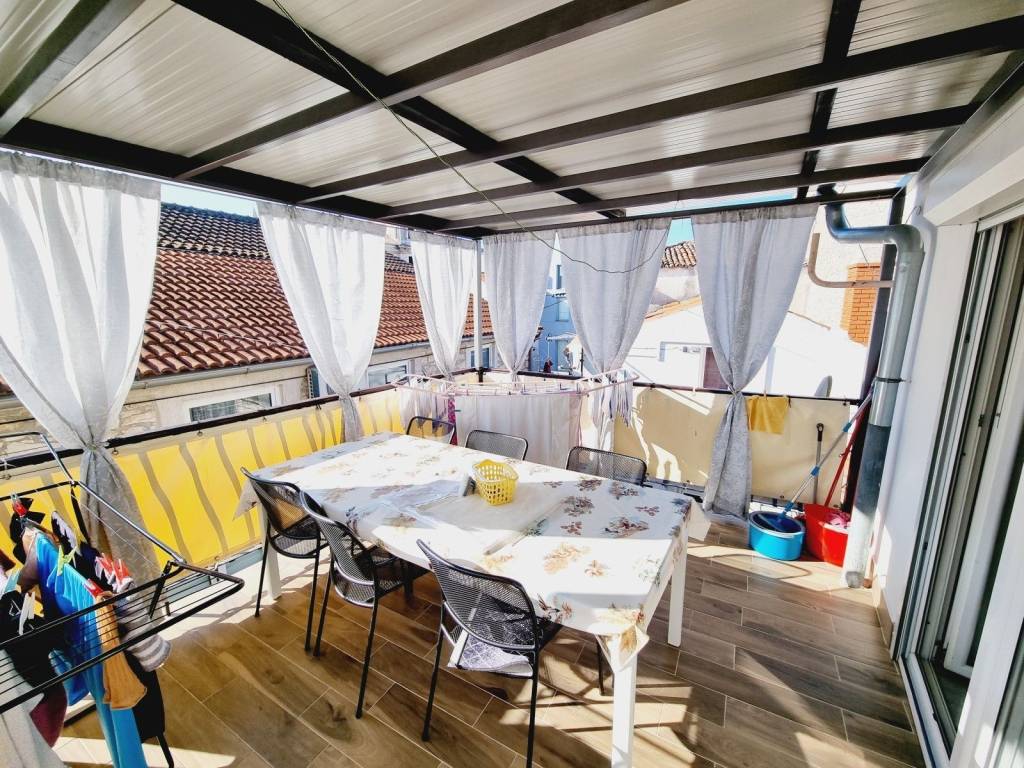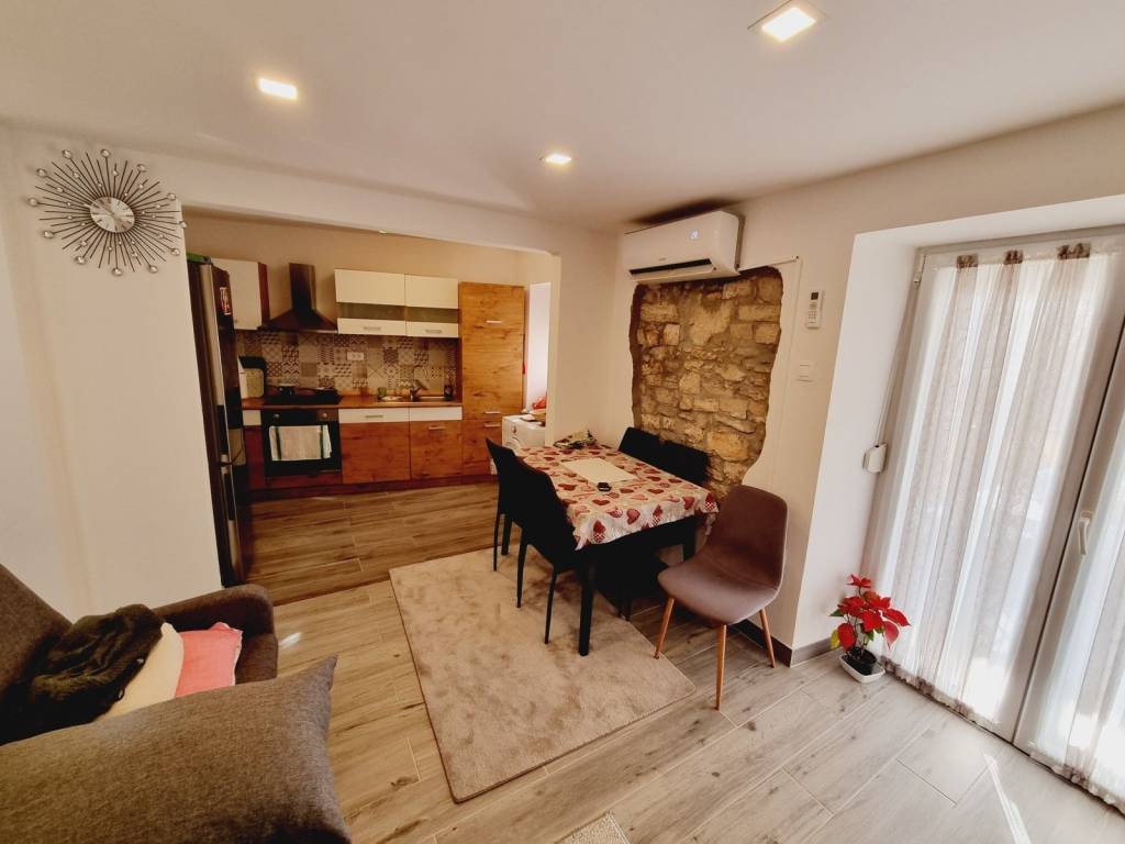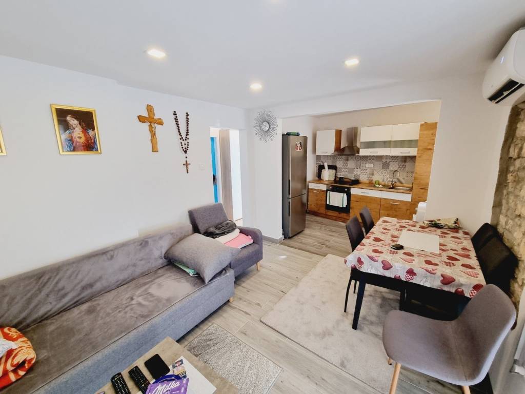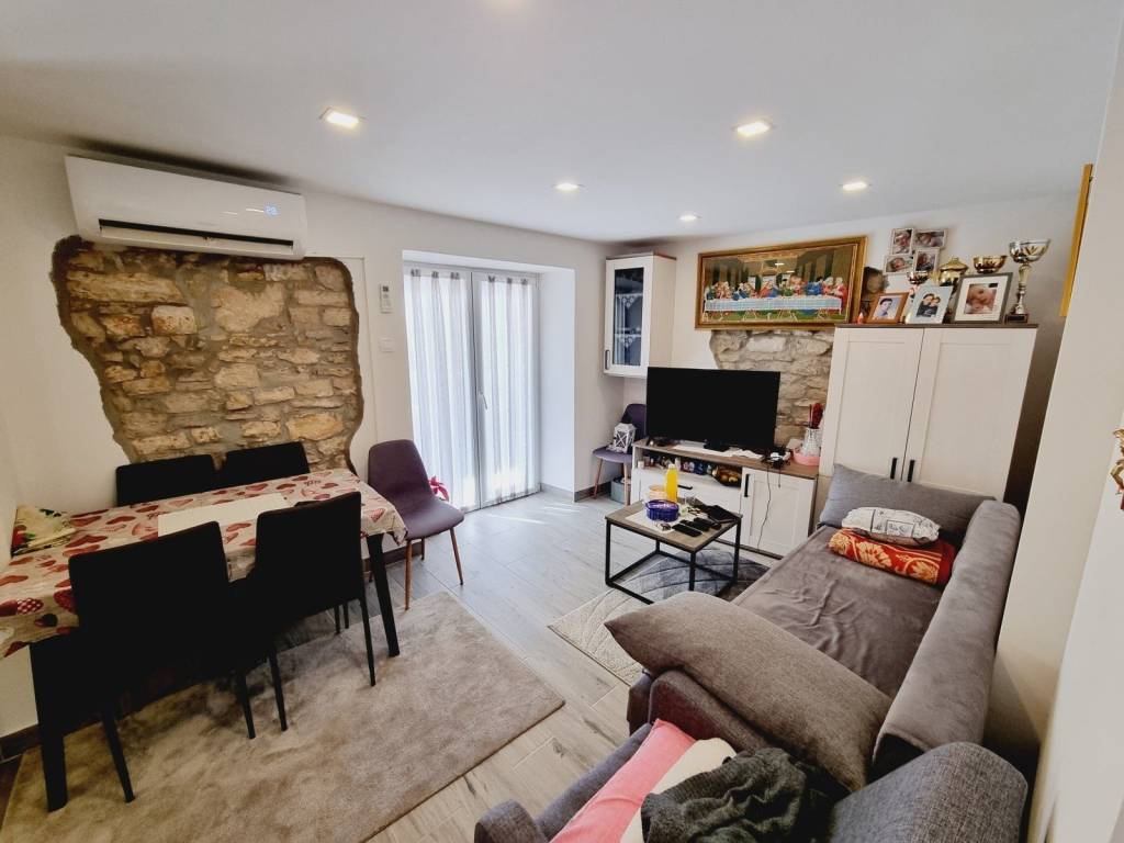 For sale is an apartment located in the heart of Tar. This spacious 77 square meter apartment located on the first floor consists of an entrance hall, bathroom, two bedrooms - one of which has access to a large terrace with sea views - as well as a kitchen and a living room with access to a second terrace.