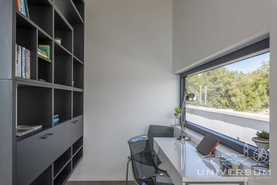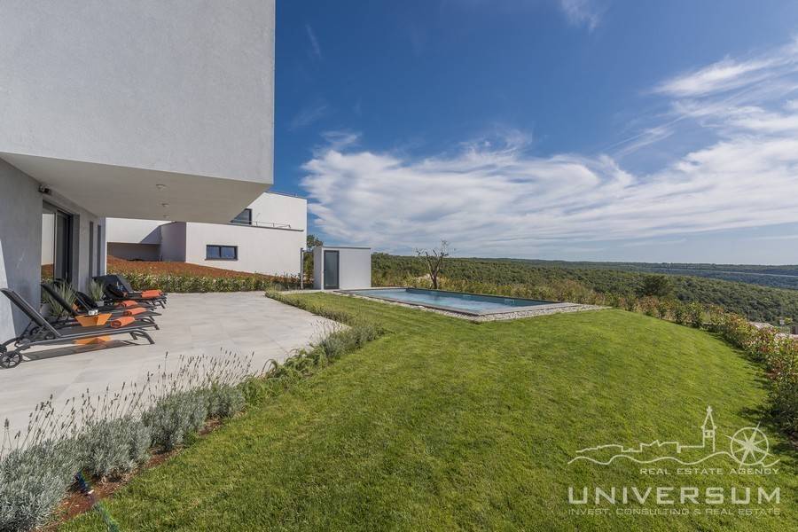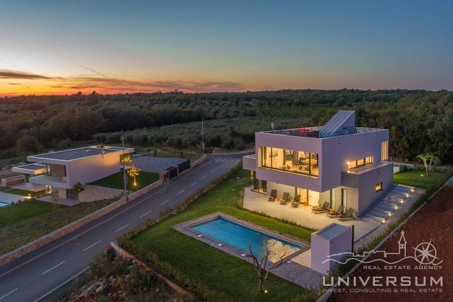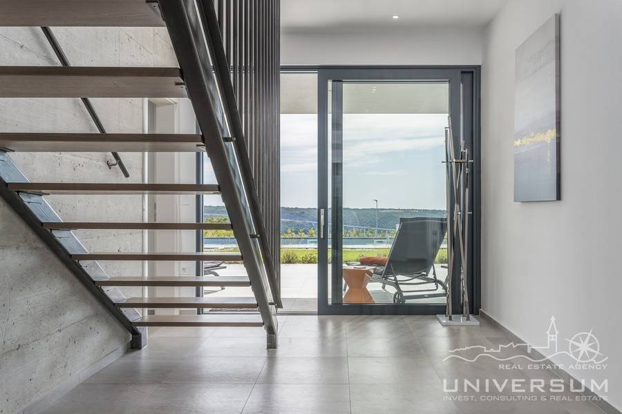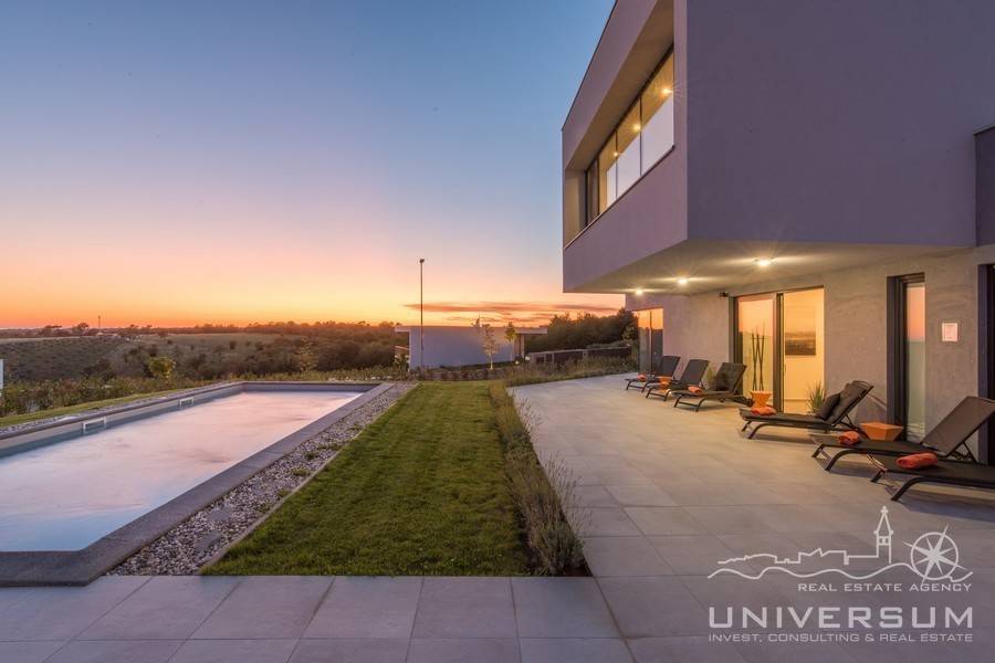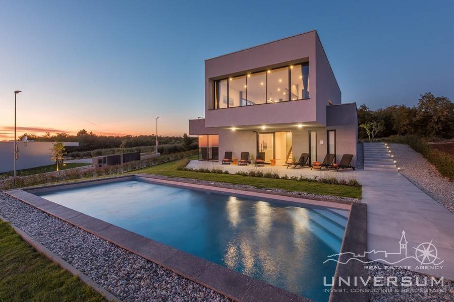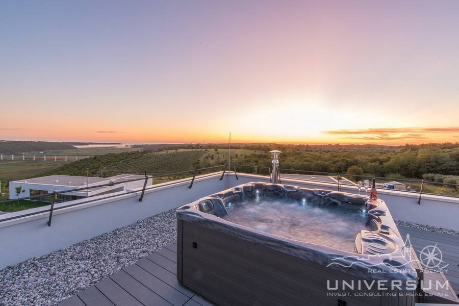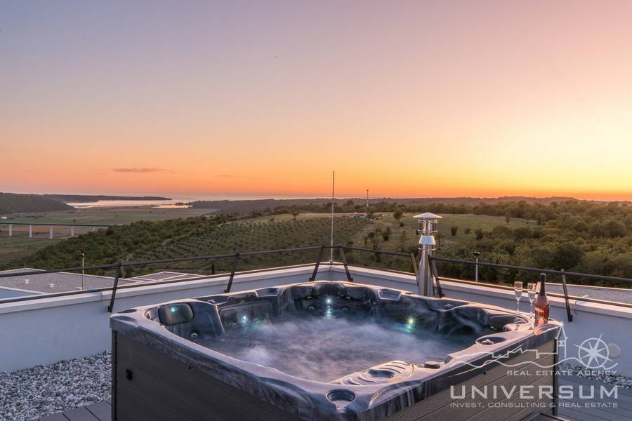 In a beautiful, secluded location, just a few minutes' drive from Novigrad, this luxurious villa awaits its new owner. What makes this building special, in addition to the top-quality workmanship and modern architectural style, is its unique location, which allows for a breathtaking view of the sea, olive groves and nature from any point. Whether you are in the pool, enjoying a meal on the terrace, reading a book in the living room or relaxing in the jacuzzi on the roof terrace - every view is breathtaking!