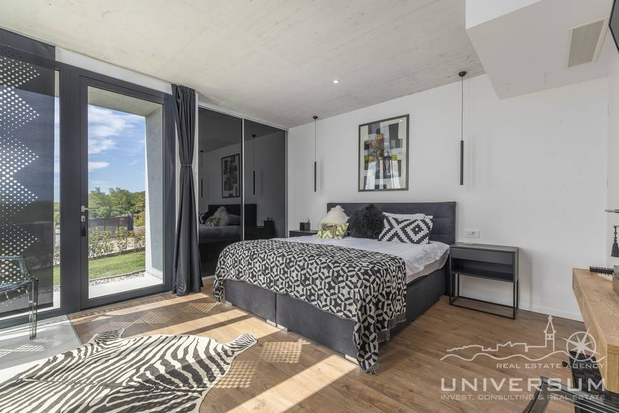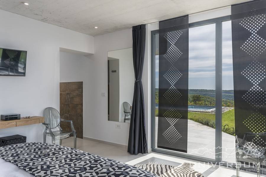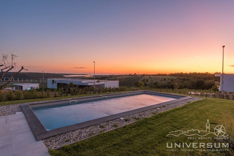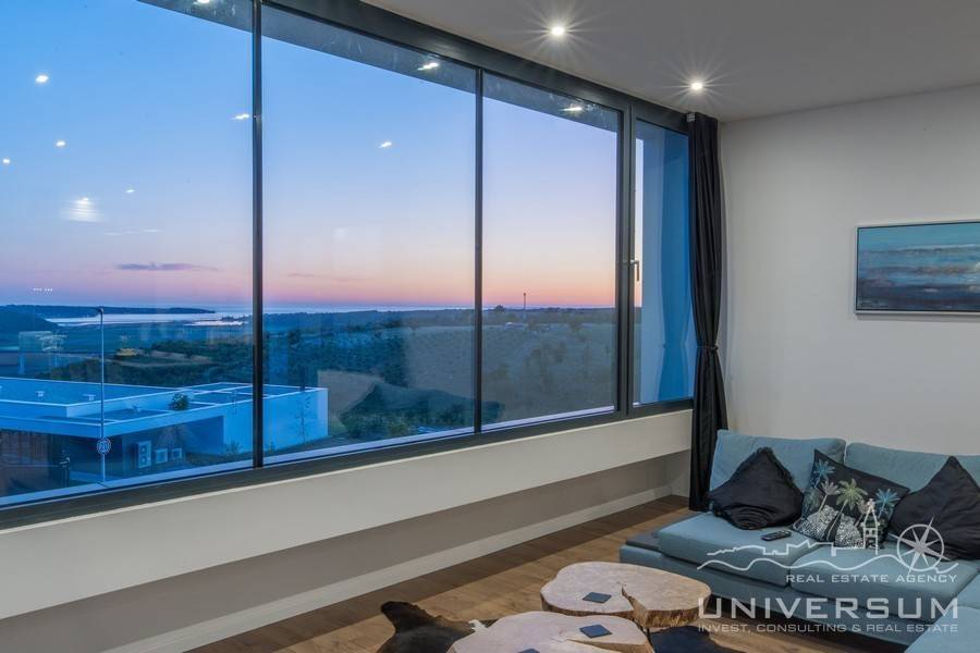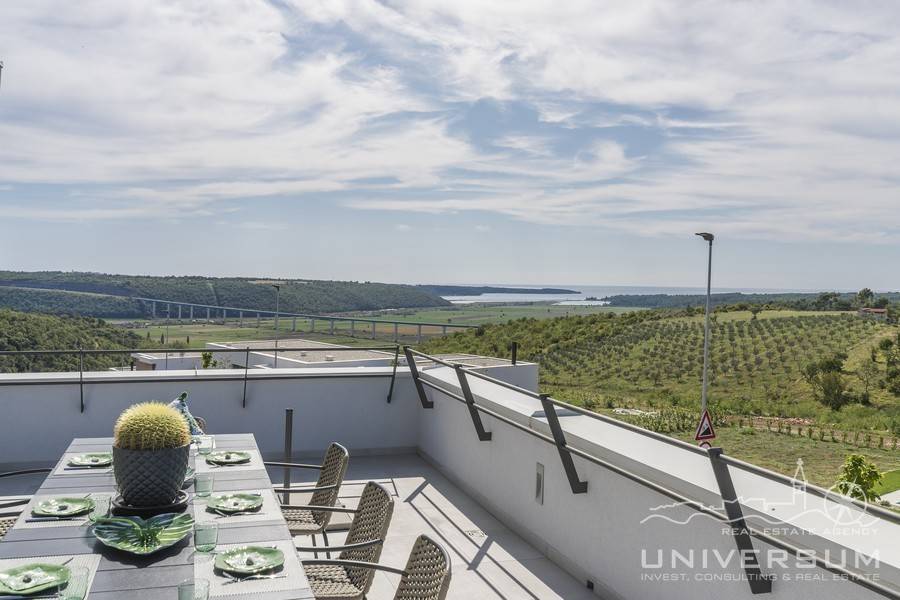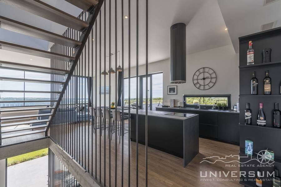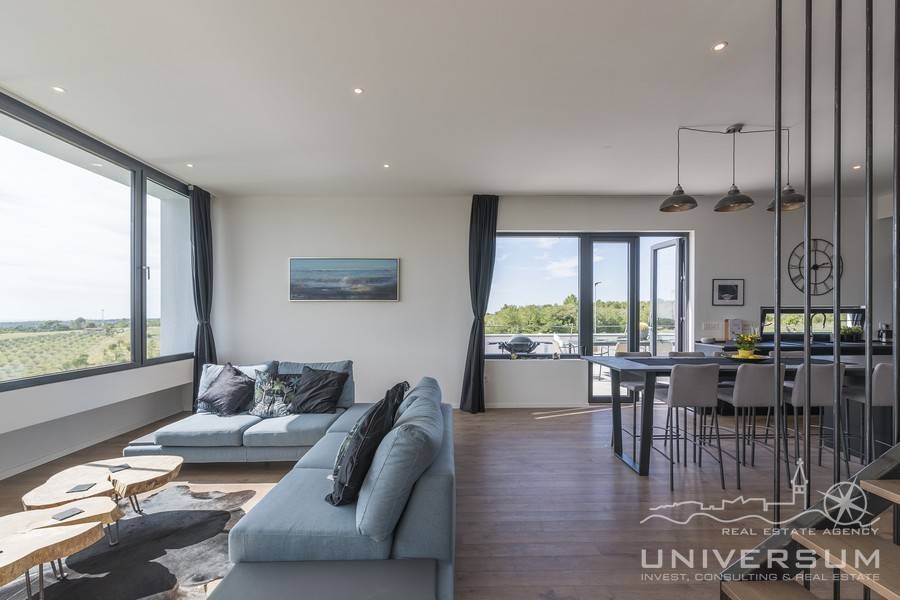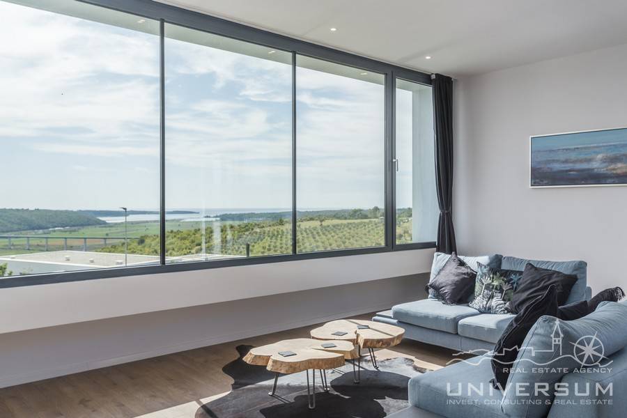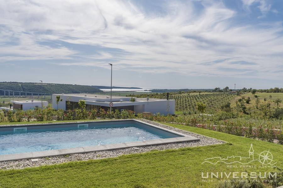 In a beautiful, secluded location, just a few minutes' drive from Novigrad, this luxurious villa awaits its new owner. What makes this building special, in addition to the top-quality workmanship and modern architectural style, is its unique location, which allows for a breathtaking view of the sea, olive groves and nature from any point. Whether you are in the pool, enjoying a meal on the terrace, reading a book in the living room or relaxing in the jacuzzi on the roof terrace - every view is breathtaking!