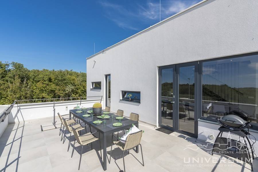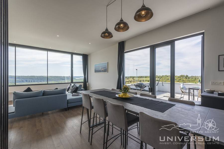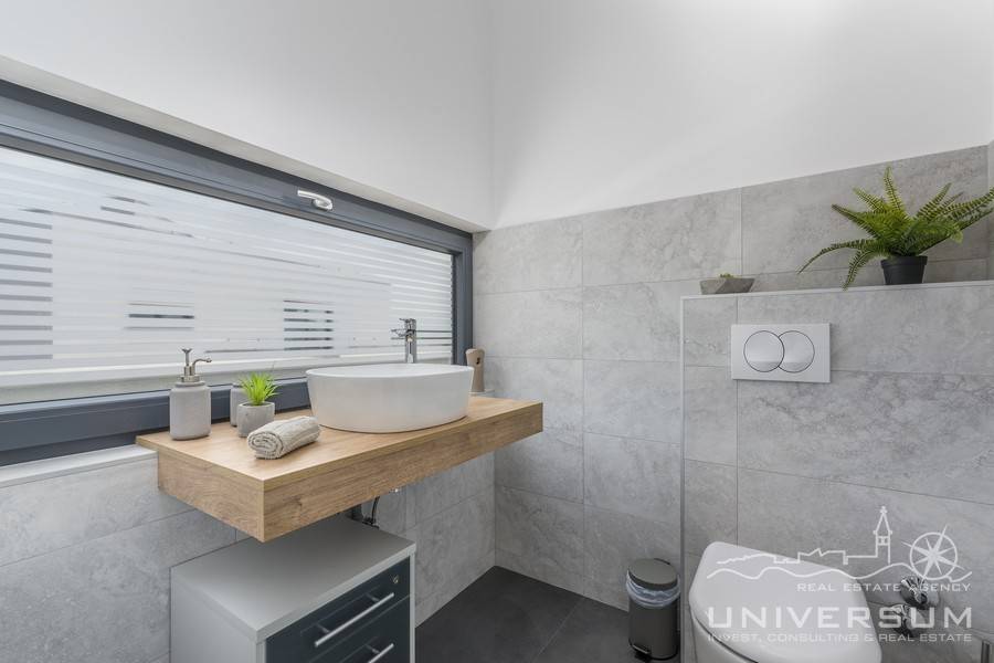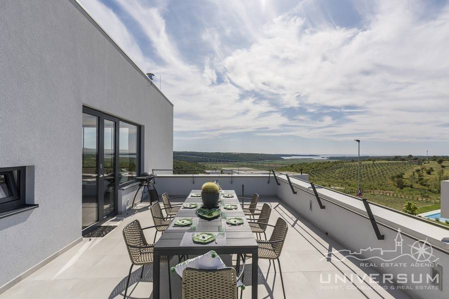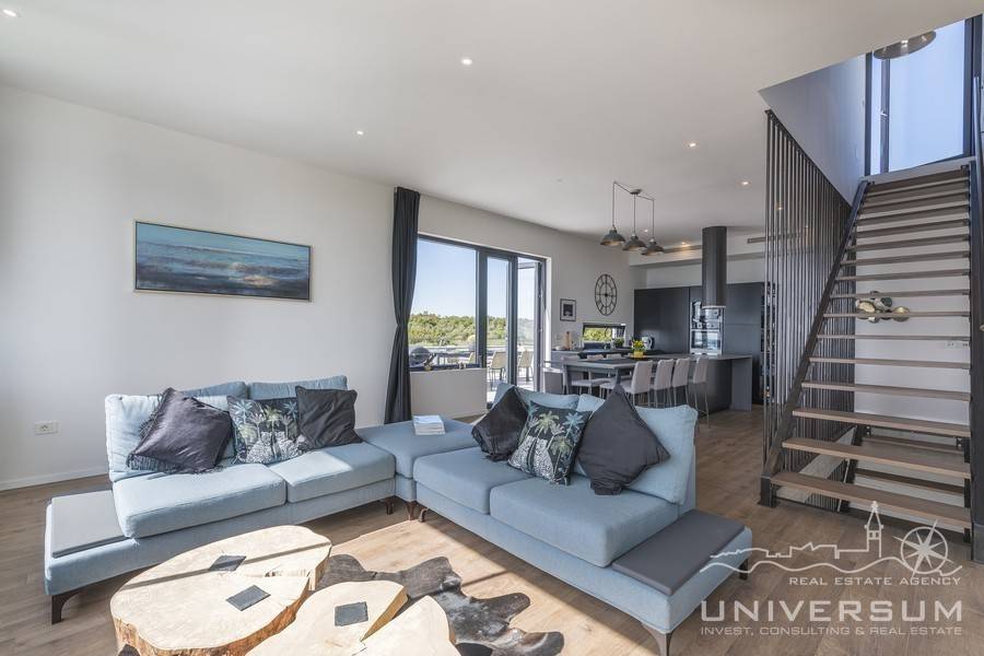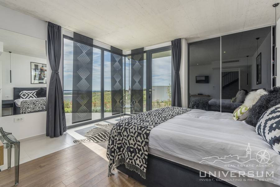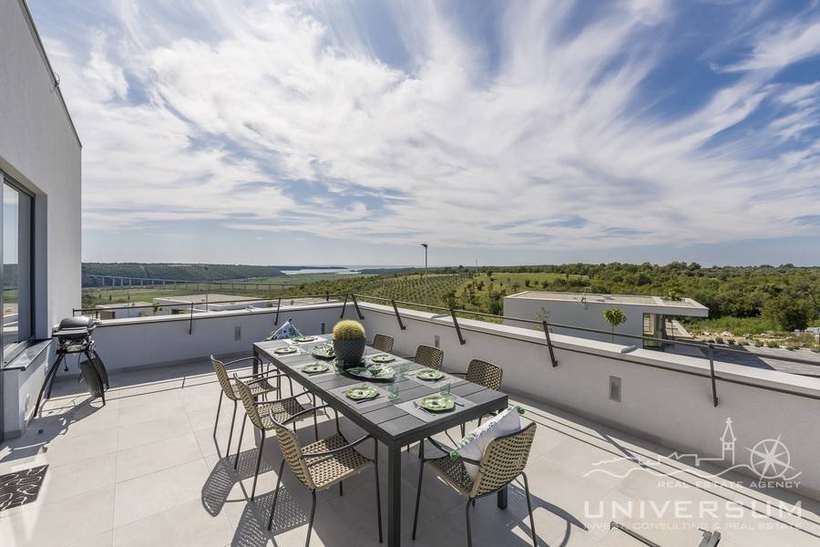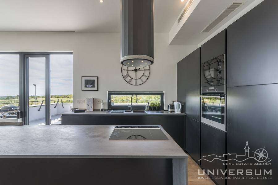 In a beautiful, secluded location, just a few minutes' drive from Novigrad, this luxurious villa awaits its new owner. What makes this building special, in addition to the top-quality workmanship and modern architectural style, is its unique location, which allows for a breathtaking view of the sea, olive groves and nature from any point. Whether you are in the pool, enjoying a meal on the terrace, reading a book in the living room or relaxing in the jacuzzi on the roof terrace - every view is breathtaking!