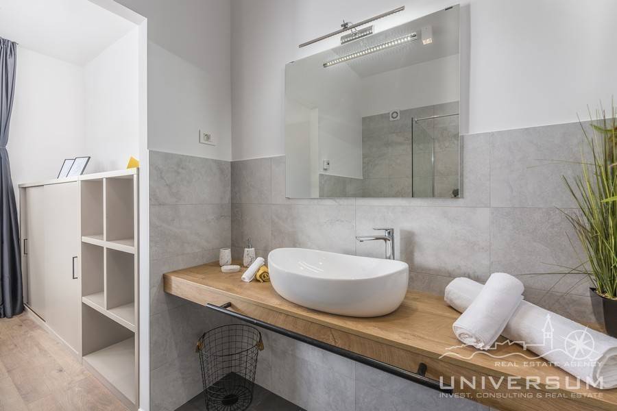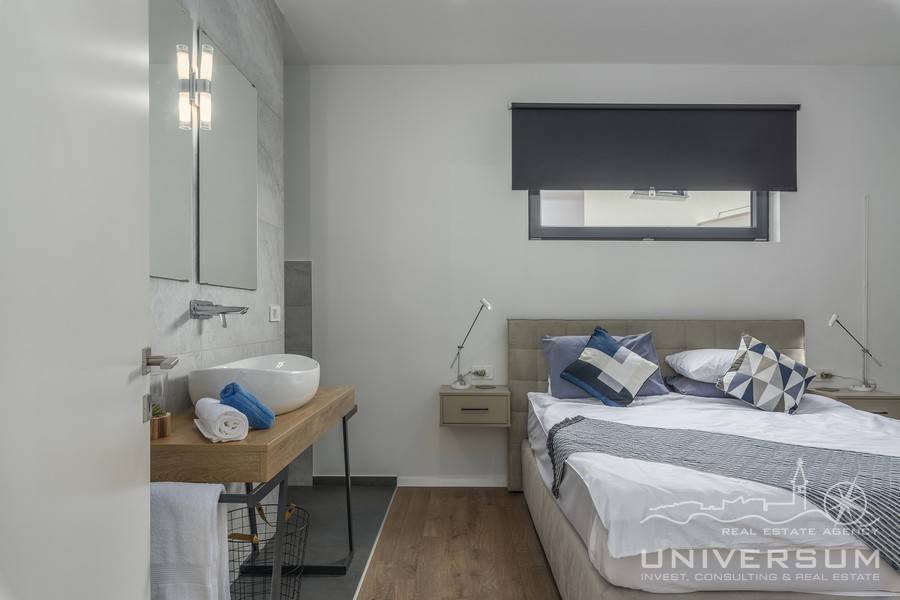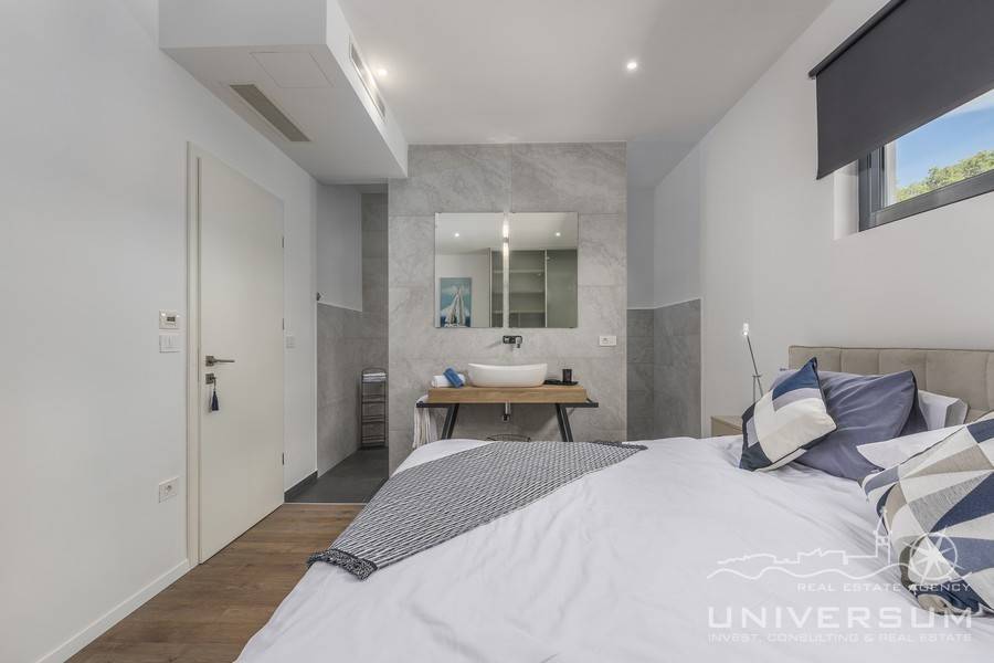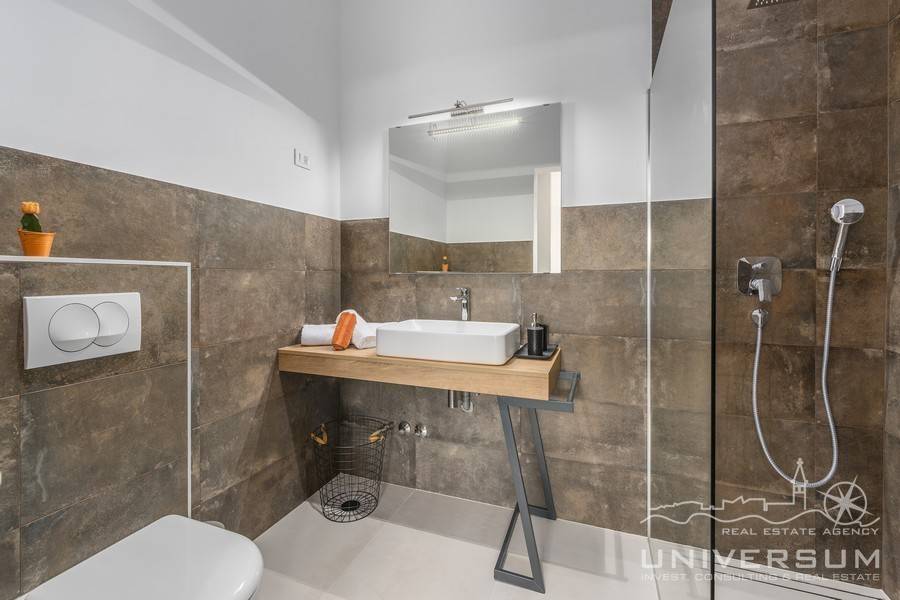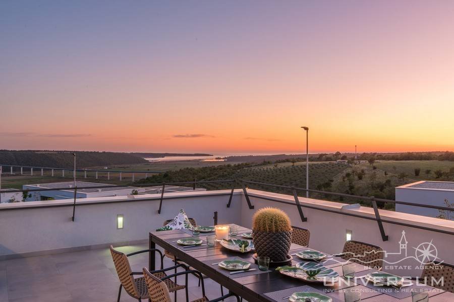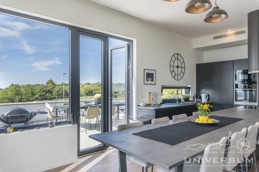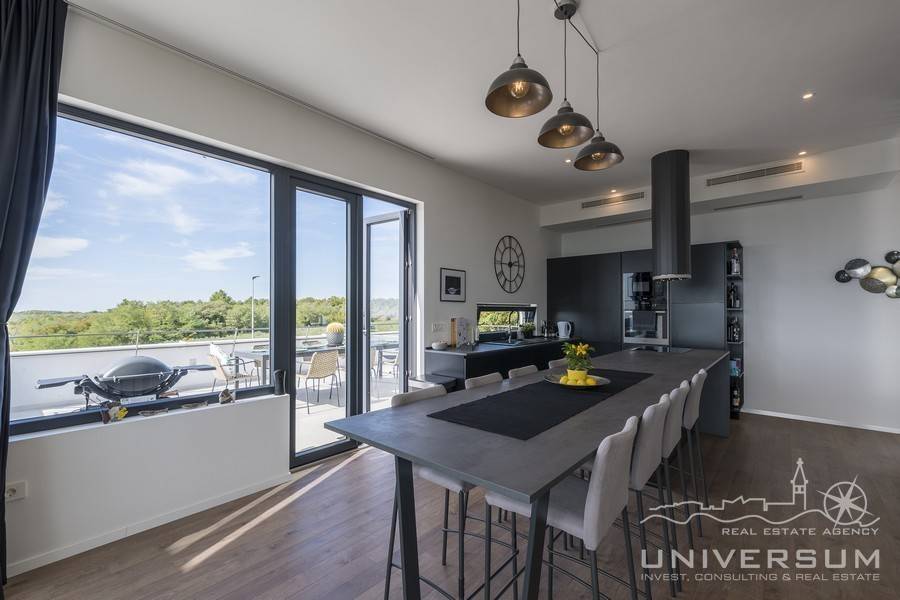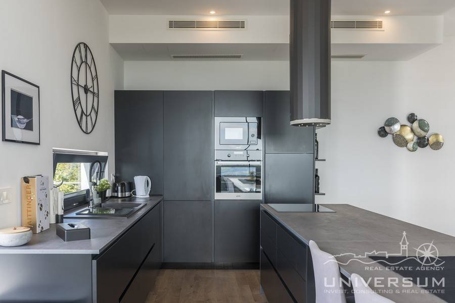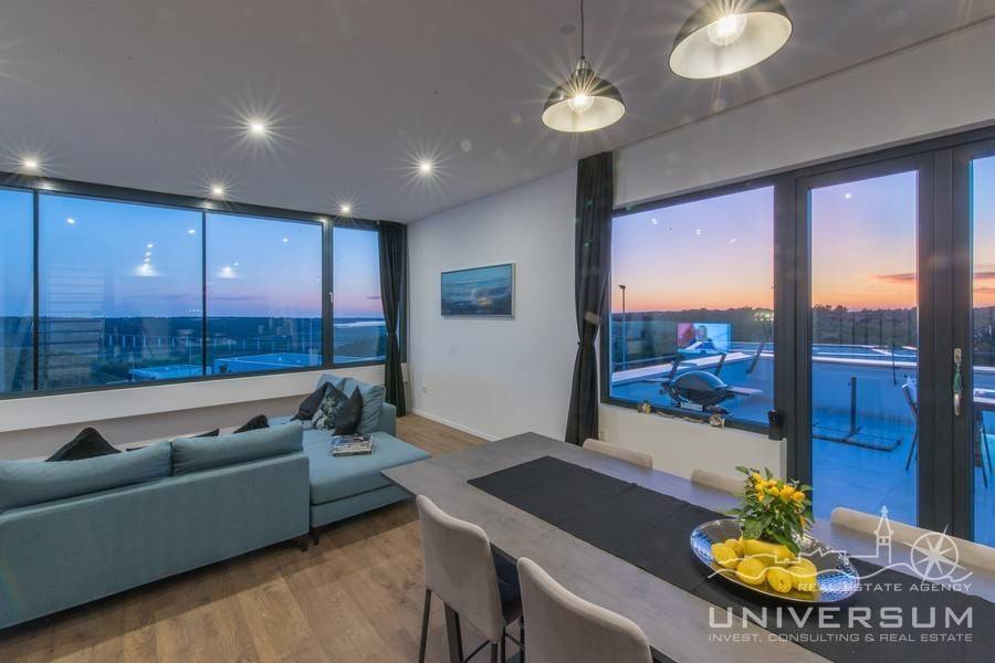 In a beautiful, secluded location, just a few minutes' drive from Novigrad, this luxurious villa awaits its new owner. What makes this building special, in addition to the top-quality workmanship and modern architectural style, is its unique location, which allows for a breathtaking view of the sea, olive groves and nature from any point. Whether you are in the pool, enjoying a meal on the terrace, reading a book in the living room or relaxing in the jacuzzi on the roof terrace - every view is breathtaking!
