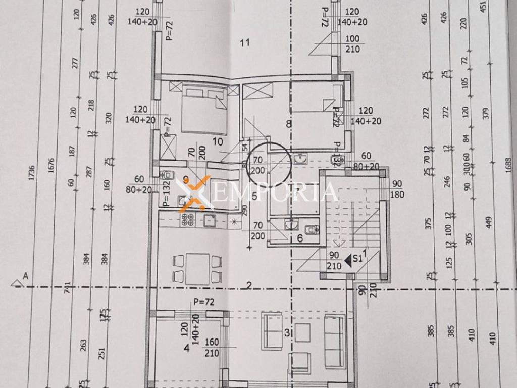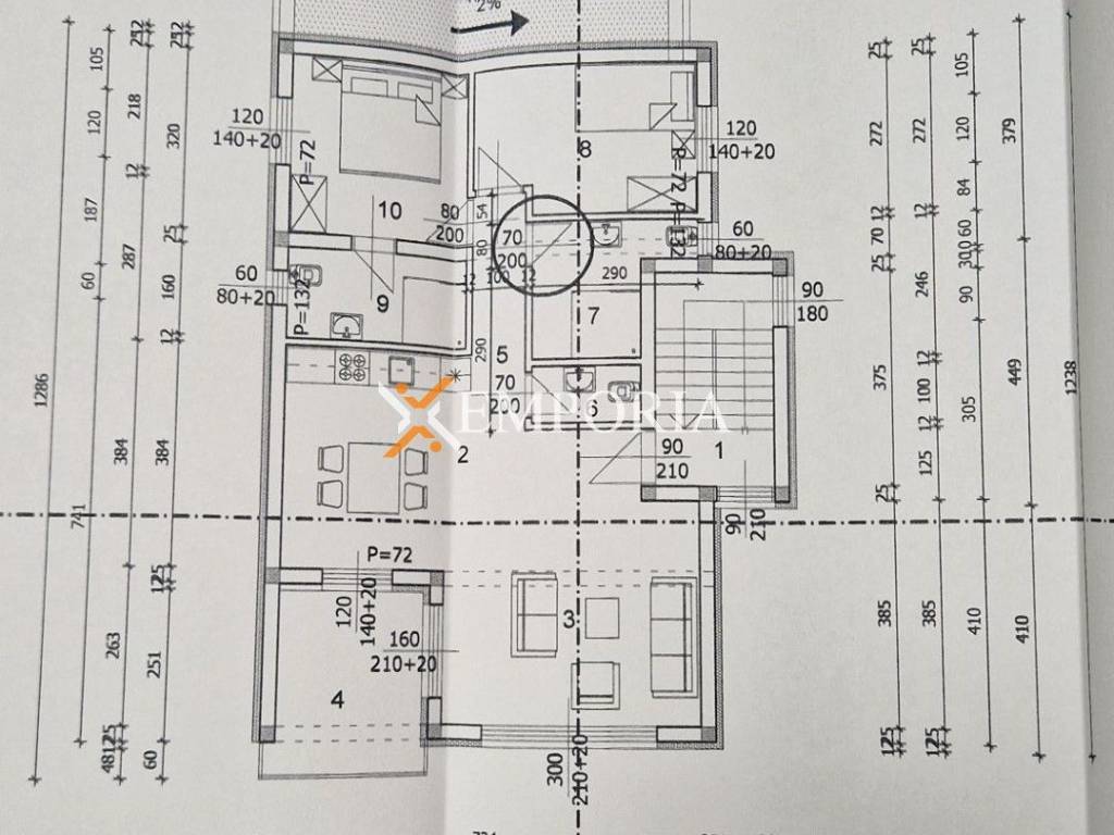 The building consists of ground floor, first and second floor. On the ground floor there is a two-bedroom apartment and a studio apartment. On the first floor there is a three-bedroom apartment. On the second floor is a two-bedroom apartment with a roof terrace. The area of the above mentioned is 297,28 m2.