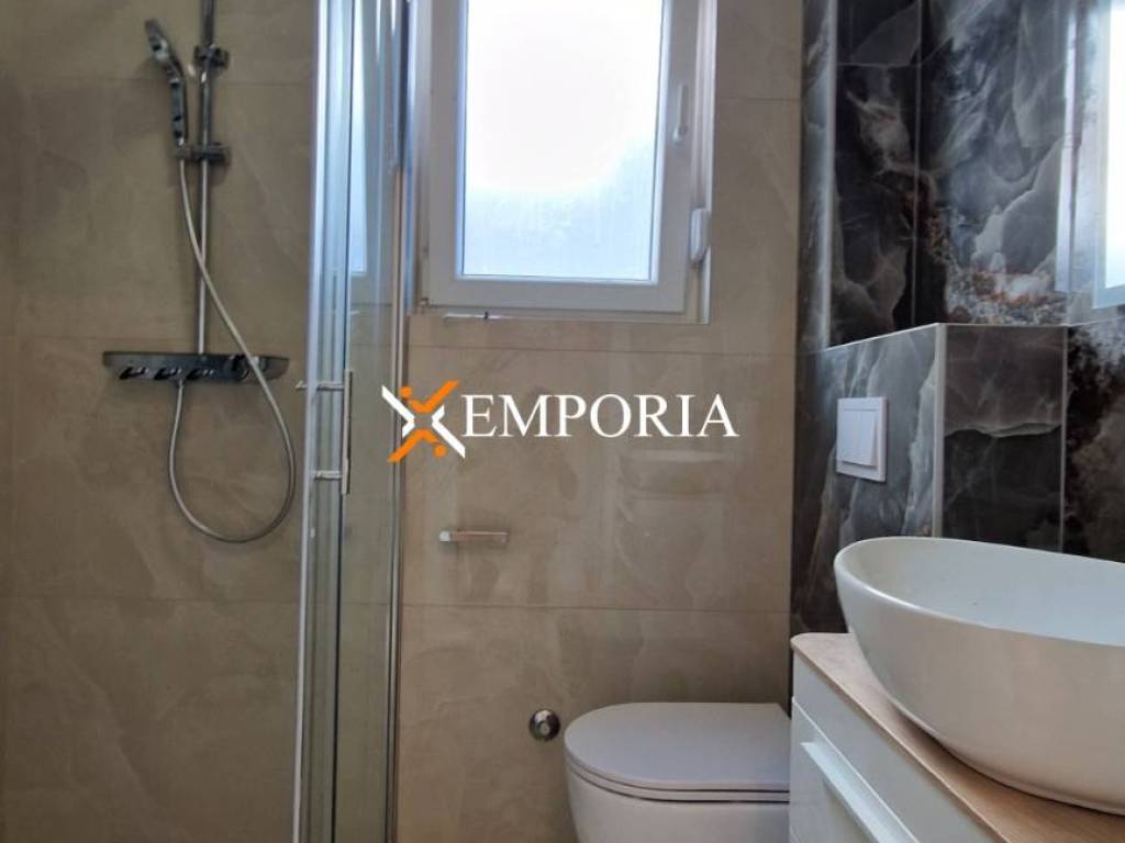 The building is constructed with thermal clay blocks and insulated with a 10 cm styrofoam facade. It features PVC windows, tiled floors, and a burglar- and fire-resistant entrance door. Access is via a public asphalt road.