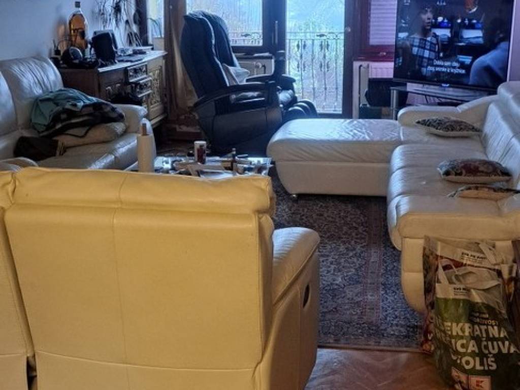 3 stana, sve stambene površine useljive, centralno grijanje, fasada, ograđene terase I balkoni, garaža u prizemlju. Kvalitetna drvena stolarija sa IZO staklima -ograđena kultivirana okućnica