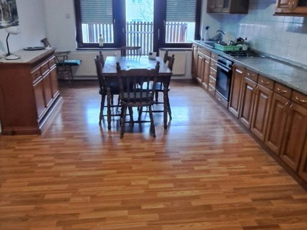RENOVACIJA poslije 2000 g uključuje: uvedeno centralno grijanje/lož ulje kroz sve tri etaže, 2 pumpe -mogućnost odvojenog grijanja najgornje etaže, termostati, tank 1000 l; mogućnost uvođenja PLINA kao energenta, obzirom da je kroz ulicu prošla plinifikacija,; FASASA 12 cm stiropor sa prednje strane I bočno 2/3 kuće,; STOLARIJA kvalitetna drvena na gornjem katu nova sa IZO staklima 1.5 cm; NOVI PODOVI keramika sa zvučnom I termo izolacijom, mramor na kompletnom stubištu,+ granit + kovano željezo, stavljene nadstrešnice na balkone, terasom I nad garažom; NOVI parketi-hrastovi ( samo donja dnevna orginalni ), NOVE kupaonice 3 x: keramika I sanitarije; nove INSTALACIJE struje I vode; šaht vode u prednjem dijelu okućnice, kanalizacija 2 odvoda (ispred I iza kuće);DVORIŠTE- prednji dio betonske kocke, KLIMA uređaji (prije 5 god). Okućnica u potpunosti kultivizirana u prednjem dijelu dodatni parking za 3 auta ispred garaže +travnati dio sa cvijećem. Iza kuće nalazi se uređeni vrt, sa stazama između gredica i voćkama (jabuka, kruška, šljiva, trešnja) te nasad malina I kupina,kao I ukrasno nisko raslinje.. KROV na dvije vode sa kompletnom izolacijom, tavan-dijelom stajaći,pokrov-šindra zamjenjena prije nekoliko godina
