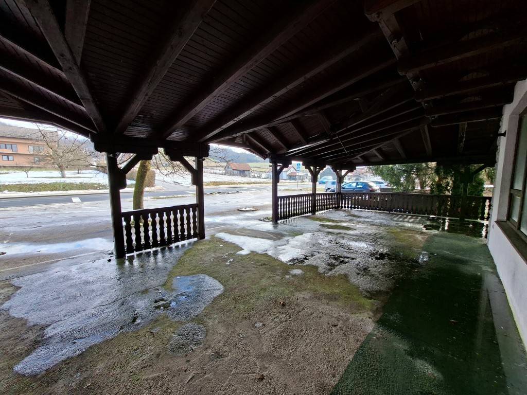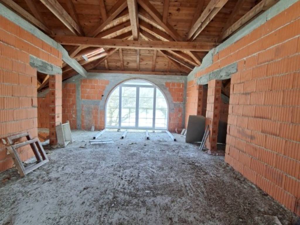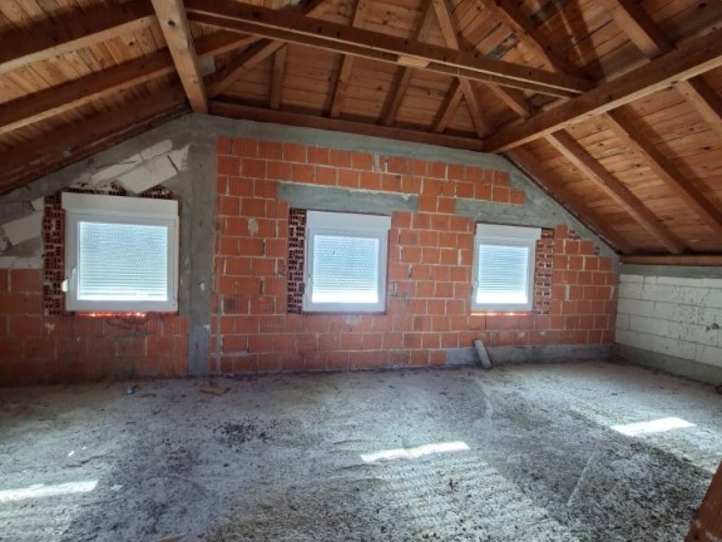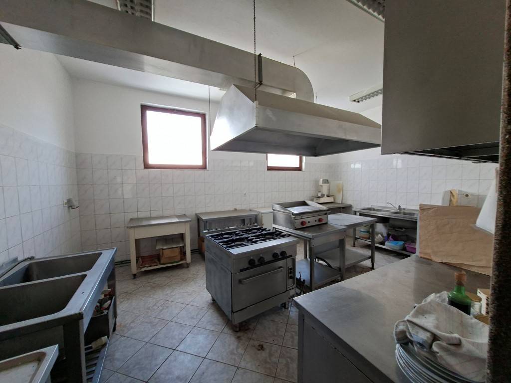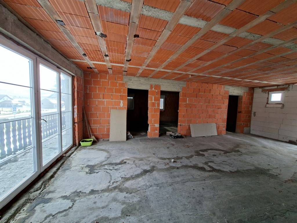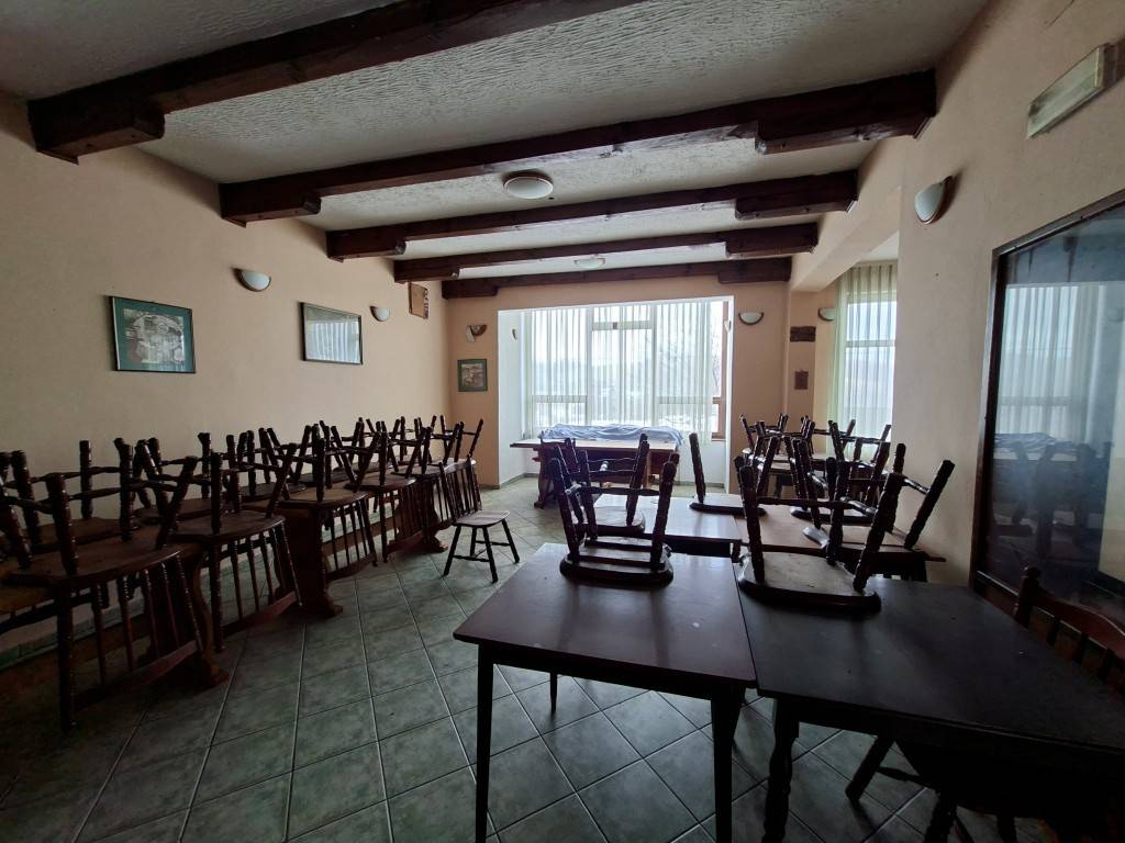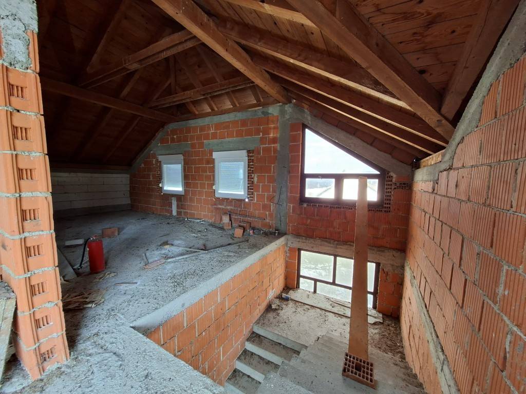 Tocrtna veličina zgrade 14,70 x 10,10 m + ugostiteljska terasa / vanjski dio / restorana cca 107 m2. Ukupna neto površina zgrade 665 m2. Zgrada se sastoji od: suterena, prizemlja i dva kata, potpuno građevinski dovršeni u dijelu suterena i prizemlja. Etaže prvog i drugog kata su nedovršeni -/ roh bau/. Pročelja su potpuno završena sa ugrađenom vanjskom stolarijom. U prizemlju, ukupne povr 224 m2 nalazi se restoran sa dva ugostiteljska prostora i inventarom te šankom, točionikom, povezano sa kuhinjom, stubištem i dvorišnim balkonom te velikom, ulaznom ugostiteljskom terasom povr 107 m2. Podovi u prizemlju i suterenu-keramika, stolarija prizemlja i suterena -drvena, kat i potkrovlje-roch bau- blok cigla, stolarija PVC. Provedena instalacija centralnog grijanja (radijatori), peć -po izboru, do sada je bila plinska cisterna, sada-samo instalacija bez peći. Suteren zgrade povr 174 m2 sadrži gospodarska spremišta za hranu, ambalažu, ugostiteljski inventar, sanitarni prostor i garderobu za osoblje , vinoteku te sanitarne prostore za goste – muške I ženske. Ovdje se nalazi još i prostor za čistačicu . U istočnom dijelu suterena je izvedena garaža za osobno vozilo, te još jedna spavaća soba. Za vertikalnu komunikaciju sa gornjim etažama i suterenom je veliko arm. bet. stubište, koje povezuje u vertikalnom smislu sve etaže u objektu. Na nivou prvog i drugog kata povr, svaki od 137 m2, izvedeni su nosivi zidovi od blok opeka sa ostavljenim otvorima za buduća vrata, odnosno planirane sobe za iznajmljivanje: 3 sobe (lijeva strana) + 2 sobe (desna strana) na svakoj etaži; ukupno 10 soba sa centralnim hodnikom i balkonom. U svim vanjskim zidovima ugrađena je PVC stolarija 2006.g. Krov: podaskano +folija; pokrov-crijep. Pokrov ugostiteljske terase-šindra. U suterenu je ulaz u prostore zgrade i garažu sa južne strane. Ulaz u prizemlju u restoran je sa sjeverne strane preko terase, dok je gospodarski ulaz i veza sa kuhinjom i točionikom te spremištima hrane i pića sa južne dvorišne strane. Struja i voda u funkciji, plaća se paušal struje te komunalija; septička- iza zgrade. Restoran je bio u funkciji do 2011.g. nakon čega prelazi u mirovanje, te mu je, sukladno tome, potrebna odgovarajuća obnova. Zgrada ima asfaltirani parking ispred restorana 15-20 mjesta. Vlasnička dokumentacija uredna, 1/1 osigurava nesmetan prijenos vlasništva, kao i mogućnost kupnje putem kredita. Rješenje o izvedenom stanju/uporabna i građevinska dozvola; sve ucrtano, upisano. Odlična lokacija, veliki parking, terasa, ugostiteljski dio, sobe za iznajmljivanje, ukupna neto površina 665 m2- pruža mogućnost odlične investicije za poduzetnike i sve poduzetne te vraćanje i nadmašivanje nekadašnjeg renomea i sjaja ovog ugostiteljskog objekta. Cijena 370 000 €