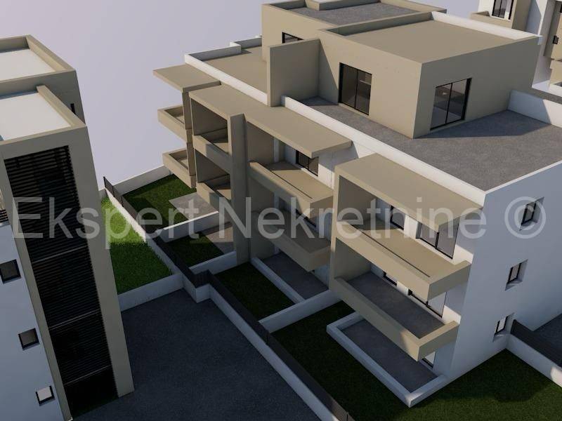 Trogir, two-bedroom apartment 57 m2 + garden 59 m2 in a new building in a smaller residential building with only 7 apartments. The apartment is located on the ground floor of the building, north-south-west-east oriented and consists of two bedrooms, bathroom, hallway, kitchen with dining room and living room, terrace (9m2) and garden (59 m2). The apartment has one outdoor parking space. Possible purchase of an additional parking space (10,000 euros).The building is located in a quiet and peaceful location only 900 m from the city center and near the Plodine shopping center. The start of work is planned for spring 09/2026 and the completion is planned 18 months after the start of construction. Quality equipment (inverter air conditioning, underfloor heating in the bathroom, six-chamber PVC joinery, quality ceramics. burglar-proof doors, thermal facade, ... etc.). Payment by construction phases.For more information and reservations, contact the agency.