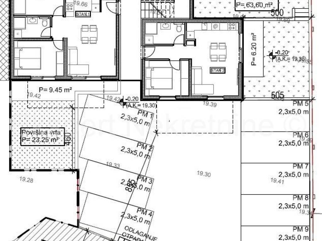 Trogir, one-bedroom apartment 36 m2 + garden 64 m2 in a new building in a smaller residential building with only 7 apartments. The apartment is located on the ground floor of the building, north-south-east oriented and consists of one bedroom, bathroom, hallway, kitchen with dining room and living room and garden (64 m2). The apartment has one outdoor parking space. Possible purchase of an additional parking space (10,000 euros).The building is located in a quiet and peaceful location only 900 m from the city center and near the Plodine shopping center. The start of work is planned for spring 09/2026 and the completion is planned 18 months after the start of construction. Quality equipment (inverter air conditioning, underfloor heating in the bathroom, six-chamber PVC joinery, quality ceramics. burglar-proof doors, thermal facade, ... etc.). Payment by construction stages.For more information and reservations, contact the agency.