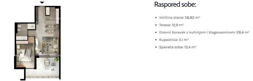 We present to you a new residential project in Umag a modernly designed complex located just 200 meters from the sea and in close proximity to the city center. This new development offers 95 apartments spread over four floors, ranging from one-bedroom to three-bedroom units, ideal for family living, vacation, or investment.