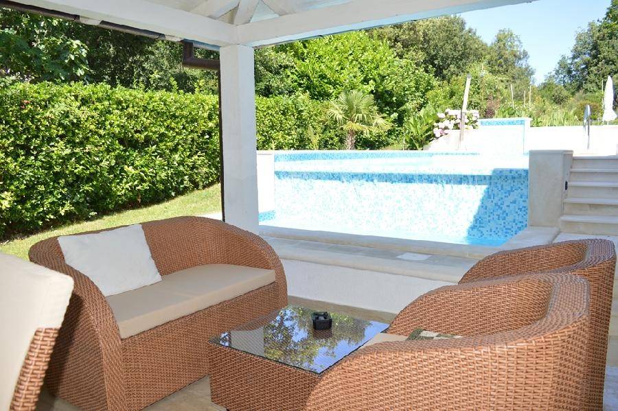 For sale is a house only 100 m from the sea. The house is self-standing and the residential area of this house is 530 sq.m. with terraces. It consists of a ground-floor apartment of 100 sq.m. 2 apartments, one on the ground floor and the second on the first floor. Two apartments each area of 50 sq.m. House has swimming pool and garage. A big parking place is in front of the house. The house has central heating on gas for the ground floor.