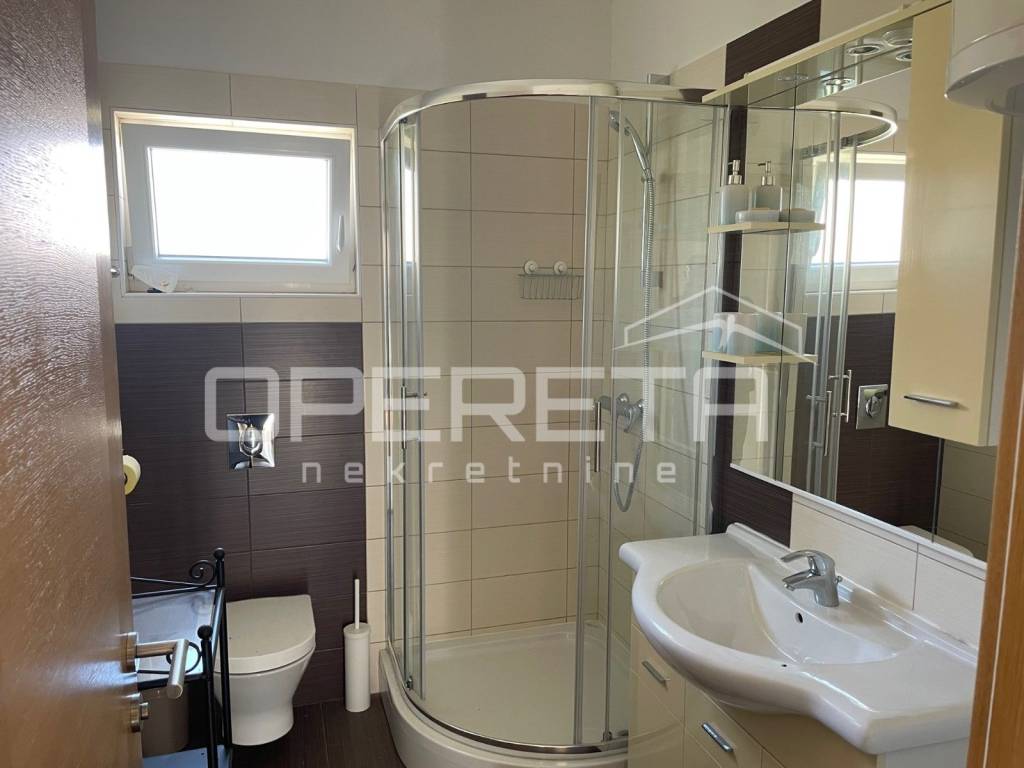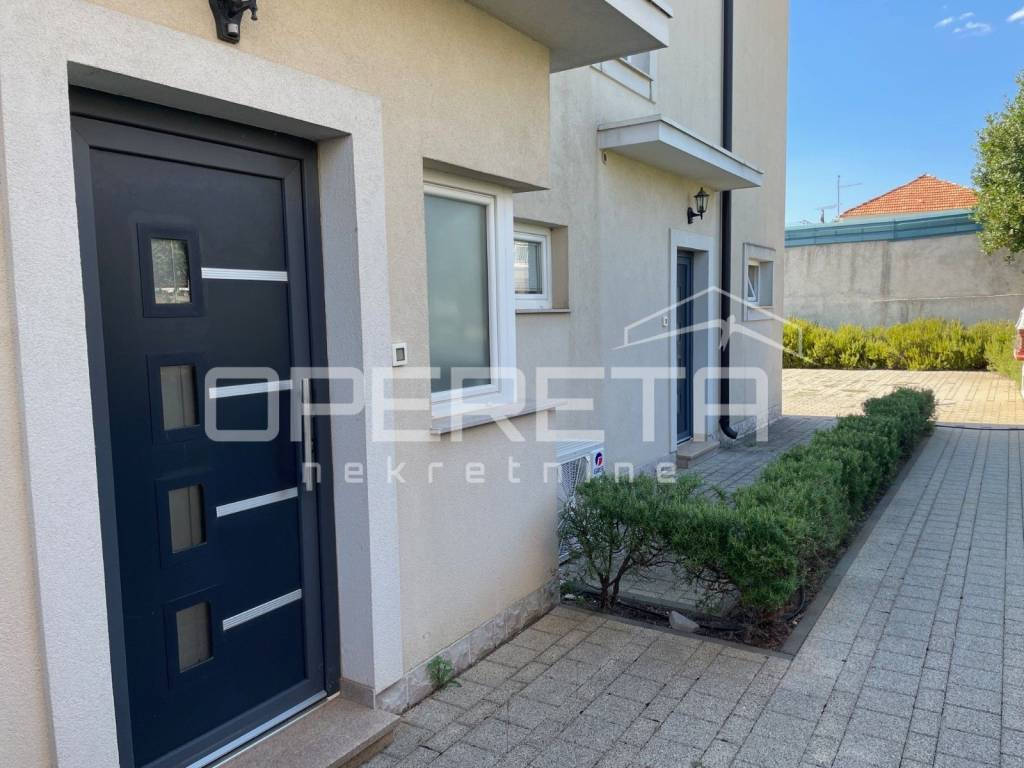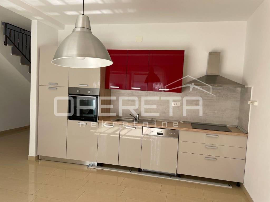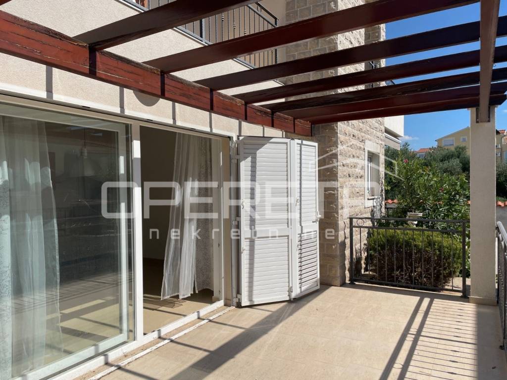 An apartment for sale in Tribunj, close to the town center and all necessary amenities. The apartment is located on the ground floor and on the first floor. The ground floor consists of an entrance, hallway, staircase, study, toilet, storage room, living room, dining room, kitchen and terrace. On the first floor there are 2 bedrooms, bathroom, loggia and storage room. The total living area of the apartment is 85.87 m2. The residential unit has a garden of 8.16 m2 and a parking space of 39.14 m2.