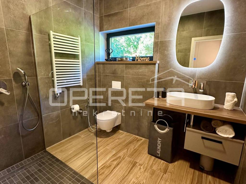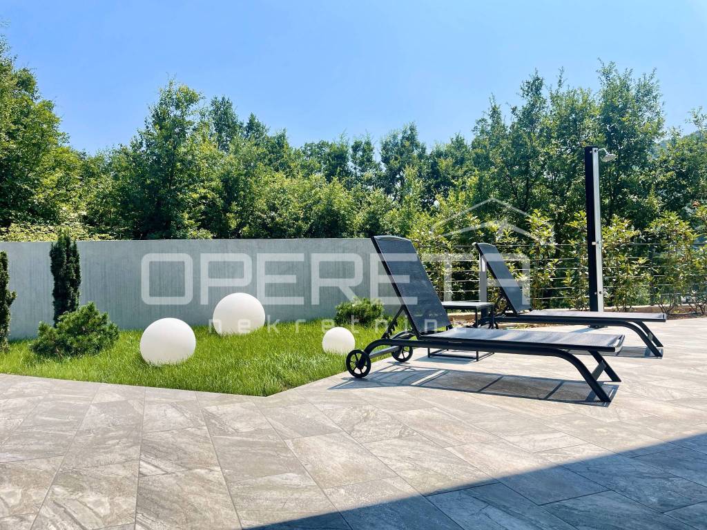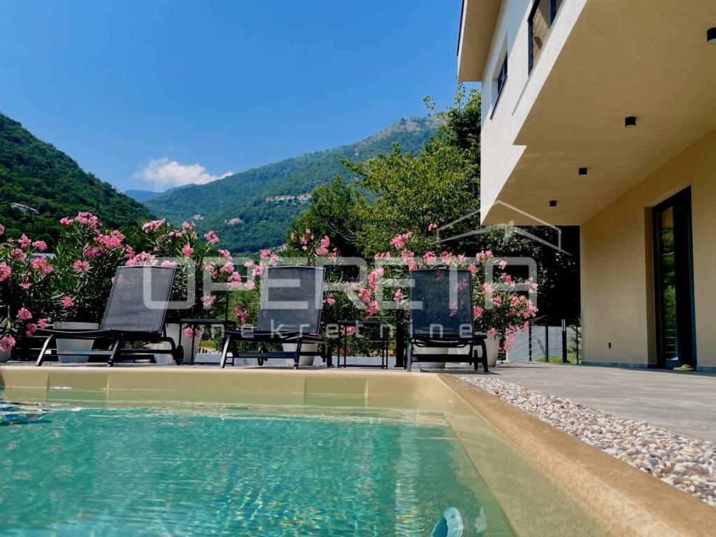 In Mošćenička Draga, in an exceptionally peaceful setting surrounded by lush greenery, a modern villa with a swimming pool is for salejust a ten-minute walk from the sea, beautiful beaches, and the town center. This property is the perfect choice for those seeking luxury, privacy, and a high standard of living on the Adriatic coast.