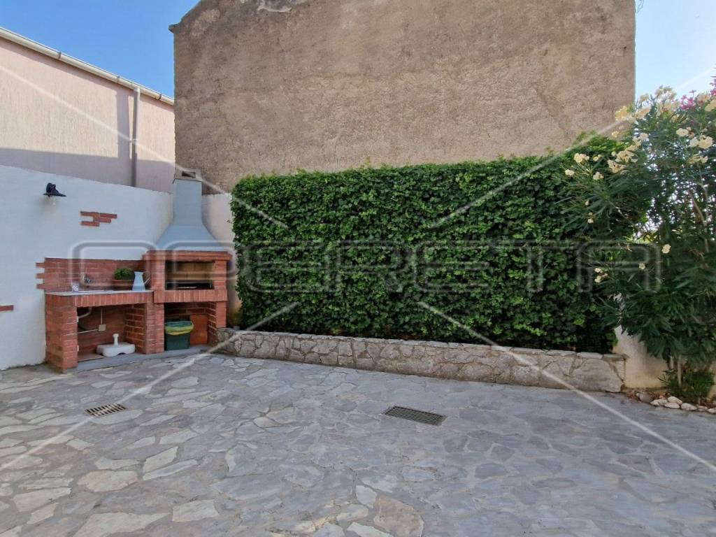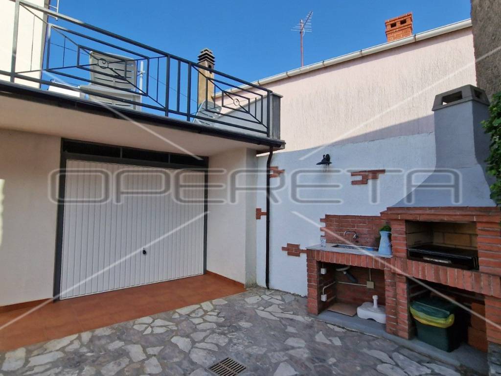 In the yard of the house there is a large garage and a barbecue with an outdoor kitchen connected to water and electricity.